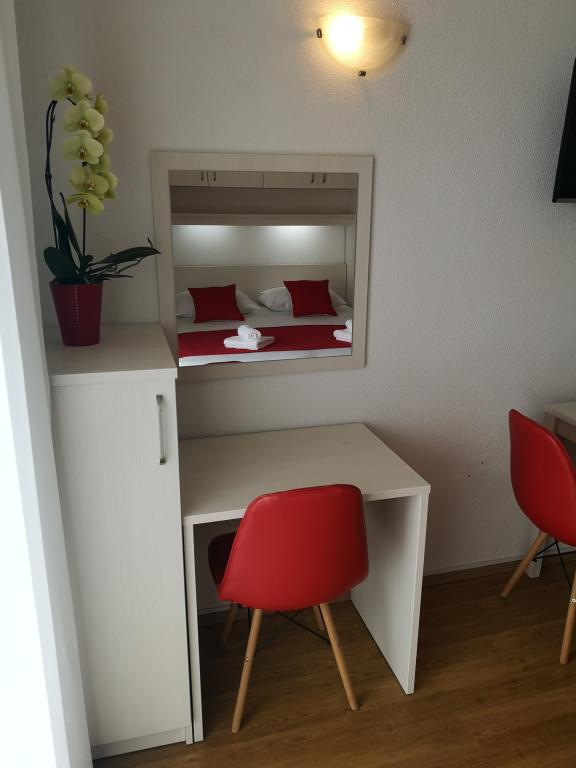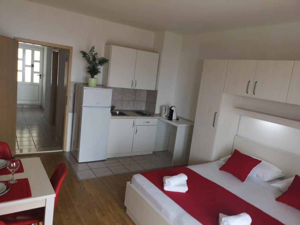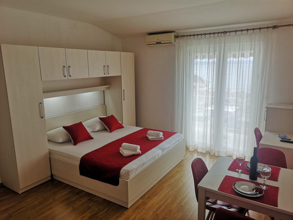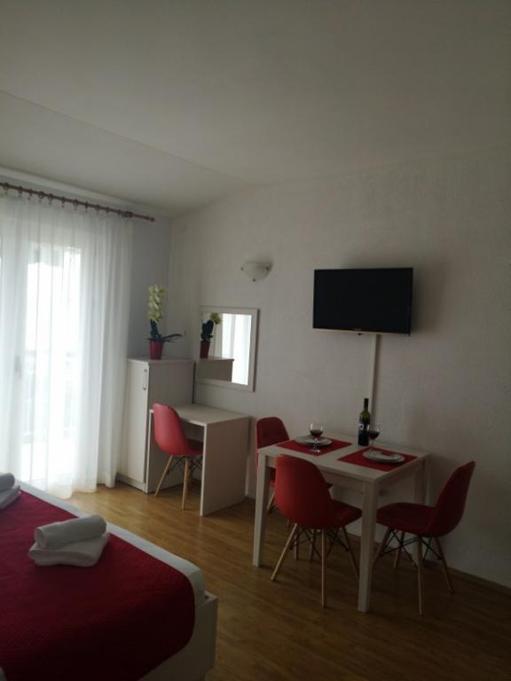 Apartamenty Dević znajdują się powyżej ścisłego centrum miasta Makarska, w spokojnej okolicy z pięknym widokiem na miasto, morze i okoliczne wyspy Brač i Hvar. Piękna żwirowa plaża oddalona jest o zaledwie 1000 m. Apartamenty otoczone są pachnącą śródziemnomorską roślinnością, która uczyni Państwa pobyt bardziej zrelaksowanym i przyjemnym. Mieszkanie posiada własny parking, balkon z widokiem na morze, kuchnię wyposażoną w sprzęt AGD, naczynia i naczynia, sypialnię, łazienkę z prysznicem, klimatyzację i telewizor.
