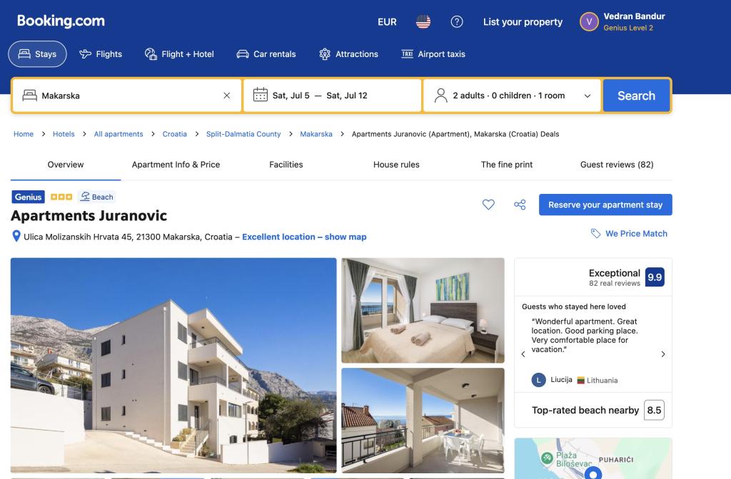 Obiekt Apartments Juranović położony jest w Makarskiej, zaledwie 250 metrów od plaży. Oferuje on zakwaterowanie z widokiem na morze, bezpłatne WiFi oraz bezpłatny prywatny parking. Wszystkie apartamenty w kompleksie wyposażone są w klimatyzację, część wypoczynkową, telewizor z płaskim ekranem, kuchnię, jadalnię oraz prywatną łazienkę z suszarką do włosów, prysznicem i pralką. Do dyspozycji Gości jest również piekarnik, lodówka, płyta kuchenna i czajnik. Nasi pracownicy są do Państwa dyspozycji i służą radą i pomocą przez cały czas pobytu.