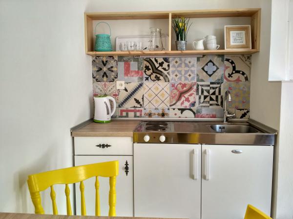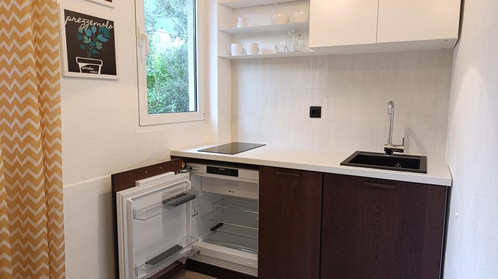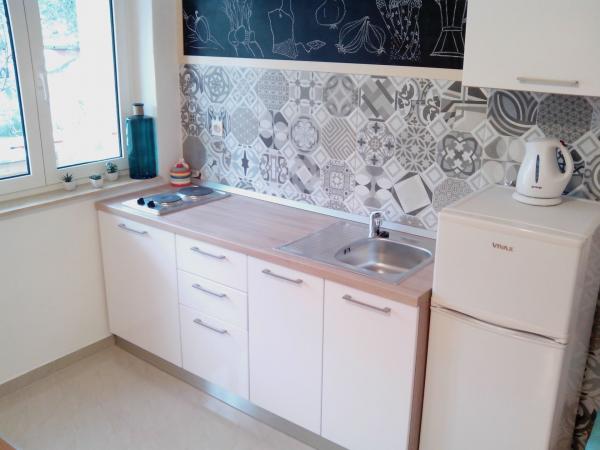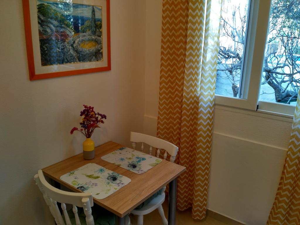 Apartament skromny, ale wszystko co potrzeba na wakacjach jest. Nawet żelazko się znalazło, ku uciesze mojego męża ha ha. W apartamencie można śmiało ugotować obiad, zrobić ręczne pranie (poza oknem są sznurki do wywieszenia), okolica cicha i spokojna z widokiem na dwa piękne drzewa: figę i oliwkę, a za nimi górę. Gospodarz Kruno jest bardzo przyjacielski i pomocny. Przywitał nas z uśmiechem i z takim samym uśmiechem pożegnał. Dziękujemy Kruno za wspaniały pobyt!