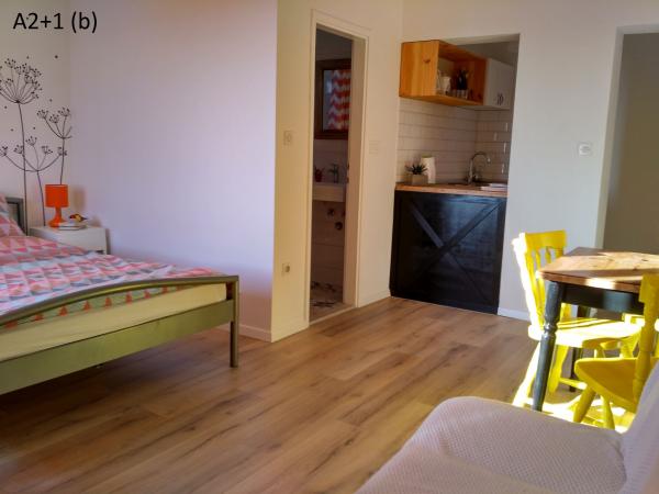 Szczerze polecam apartamenty Kruno, byliśmy w apartamencie 7+2, 3 dorosłych i 4 dzieci. Apartament przestronny, czysto i przyjemnie, jest wszytsko czego potrzeba do codziennego funkcjonowania, można się poczuć jak u siebie w domu. Cenowo bardzo przystępnie. Blisko do plaży, piekarni i marketu. Położenie idealne, nie trzeba było wchodzić daleko pod górę. Szczerze polecam.