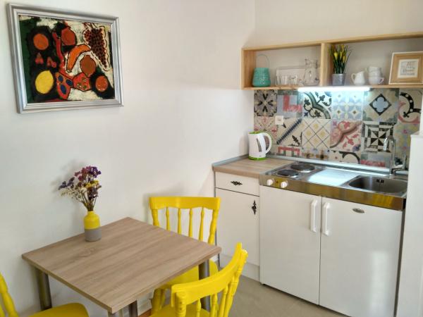 Wszystkie pochwały za gościnność i życzliwość w korespondencji podczas aranżacji noclegu. Ciche miejsce na odpoczynek. W pobliżu sklepy. Do centrum nie jest daleko i spacerując wzdłuż morza można podziwiać piękne zachody słońca. Studio jest zwrócone w stronę góry, nie jest Ci ciepło. Miasto dla wszystkich grup wiekowych. Dla aktywnego wypoczynku i przyjemności. Nie uwzględniliśmy klimatyzacji. Gdybyśmy mieli problem, wierzę, że właściciel by nam pomógł. Niedrogie. Wszystkiego najlepszego. Ana i Joakim