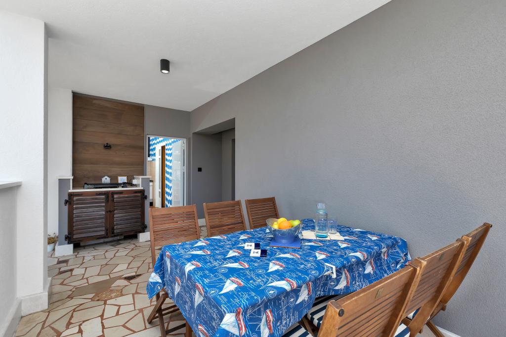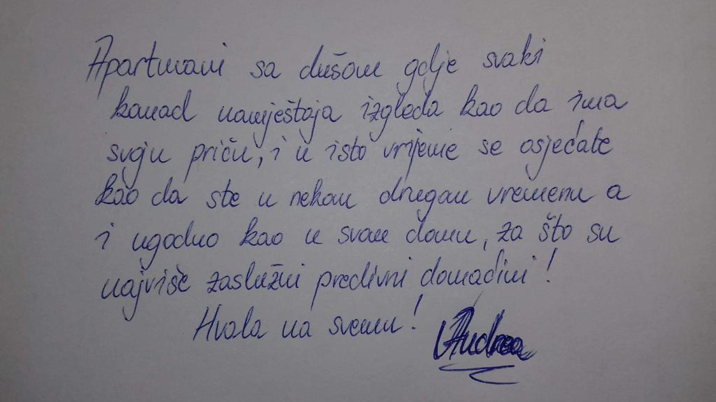 Stylowo i komfortowo urządzone apartamenty w pobliżu starówki, centrum miasta, portu, centrum sportowego i naturalnej plaży. Znajduje się 5 minut spacerem od centrum miasta i 5 minut od najbliższej plaży w leśnym parku Osejava. Rodzinna tradycja wynajmu apartamentów od 1968 roku. Apartamenty są wygodne i przestronne, nowocześnie i stylowo wyposażone. Z okien roztacza się widok na morze, wyspy i górę Biokovo. Każdy apartament posiada duży taras o powierzchni 20 m2 ze stołem jadalnym i grillem elektrycznym. Miejsca parkingowe dla gości znajdują się na podwórku domu. Idealny i odpowiedni dla rodzin z małymi dziećmi, ponieważ znajdujemy się w spokojnej części miasta otoczonej zielenią. W pobliżu znajduje się lekarz, apteka, market i market.