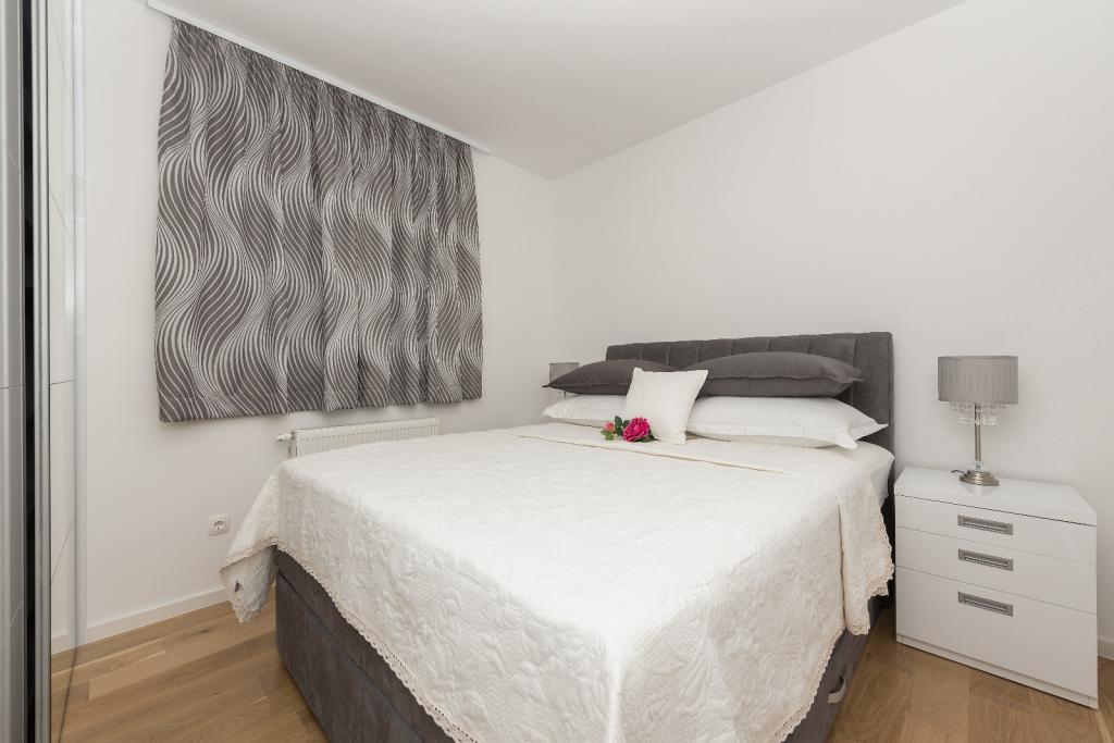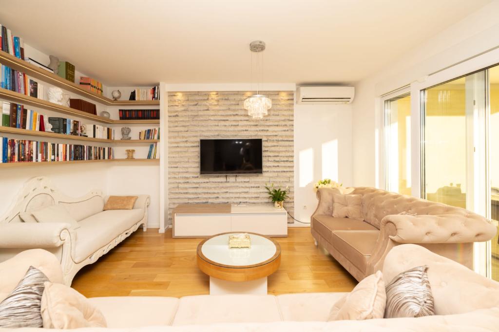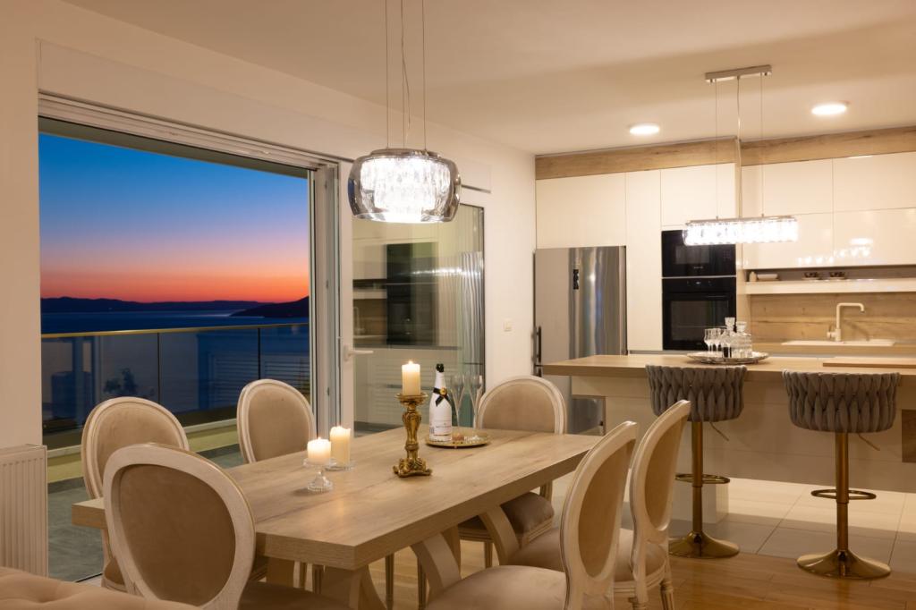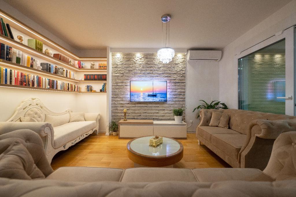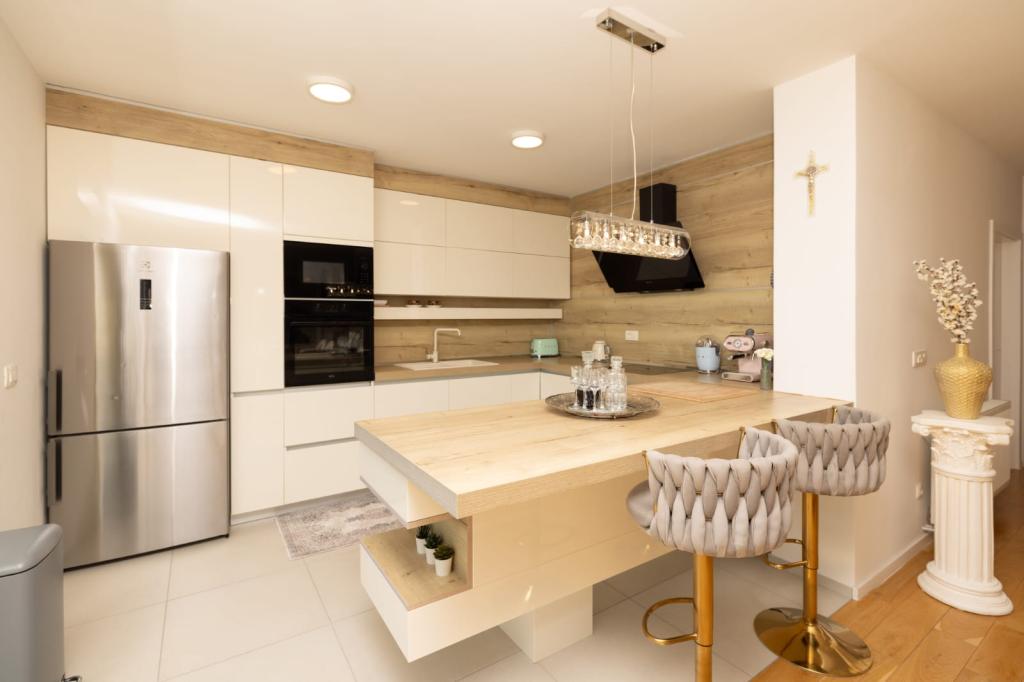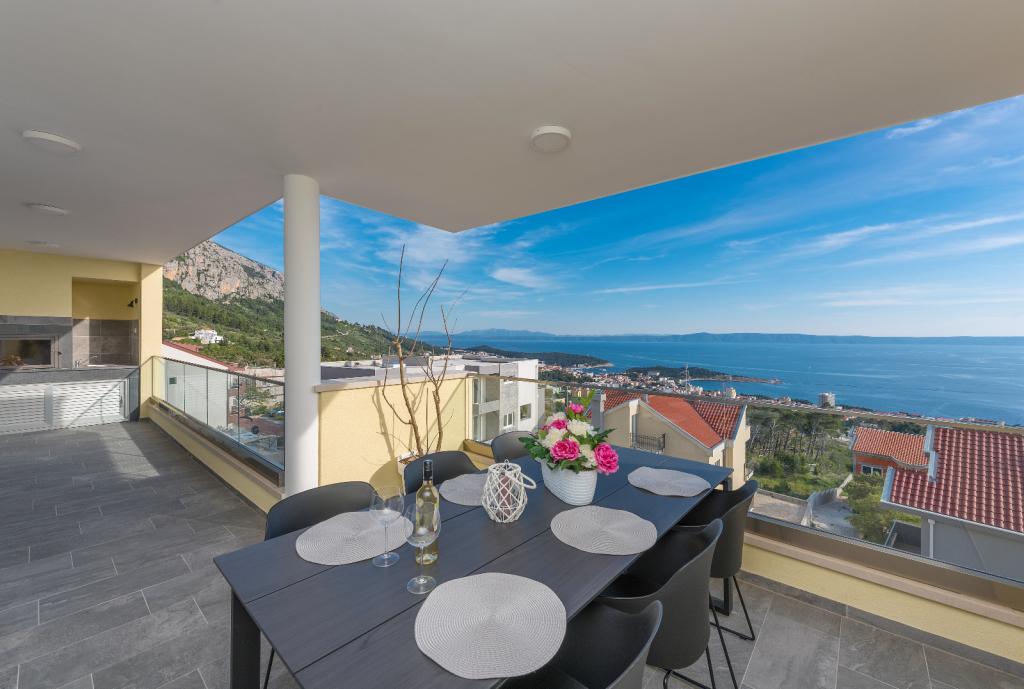 Penthouse Jure i Penthouse Nikola w Makarskiej to luksusowe i przestronne apartamenty o powierzchni 135 m², idealne na komfortowy i relaksujący pobyt. Każdy apartament składa się z trzech elegancko urządzonych sypialni, dwóch nowocześnie wyposażonych łazienek, garażu oraz dużego tarasu z przepięknym widokiem na morze i miasto, idealnego na relaks i odpoczynek. Położone w spokojnej okolicy, 2 km od centrum miasta i 1 km od morza, oferują idealne połączenie prywatności i bliskości wszelkich udogodnień.