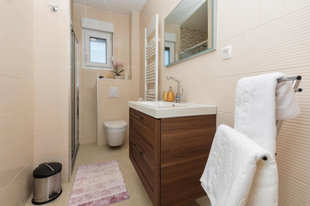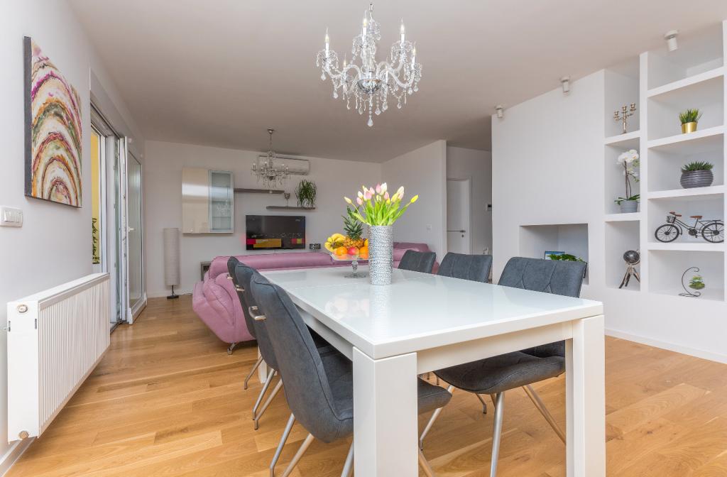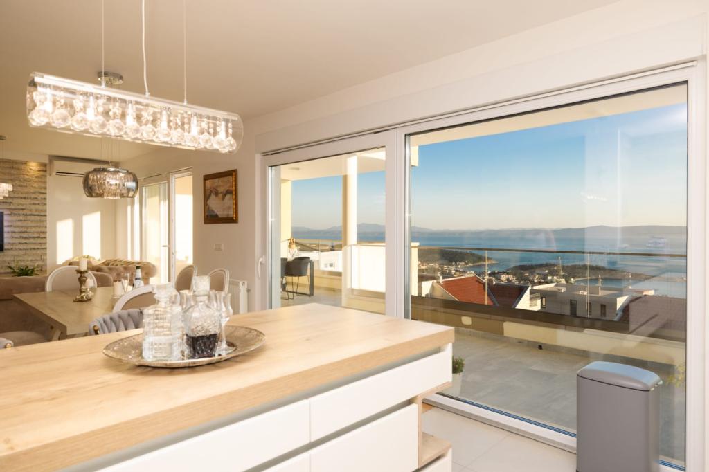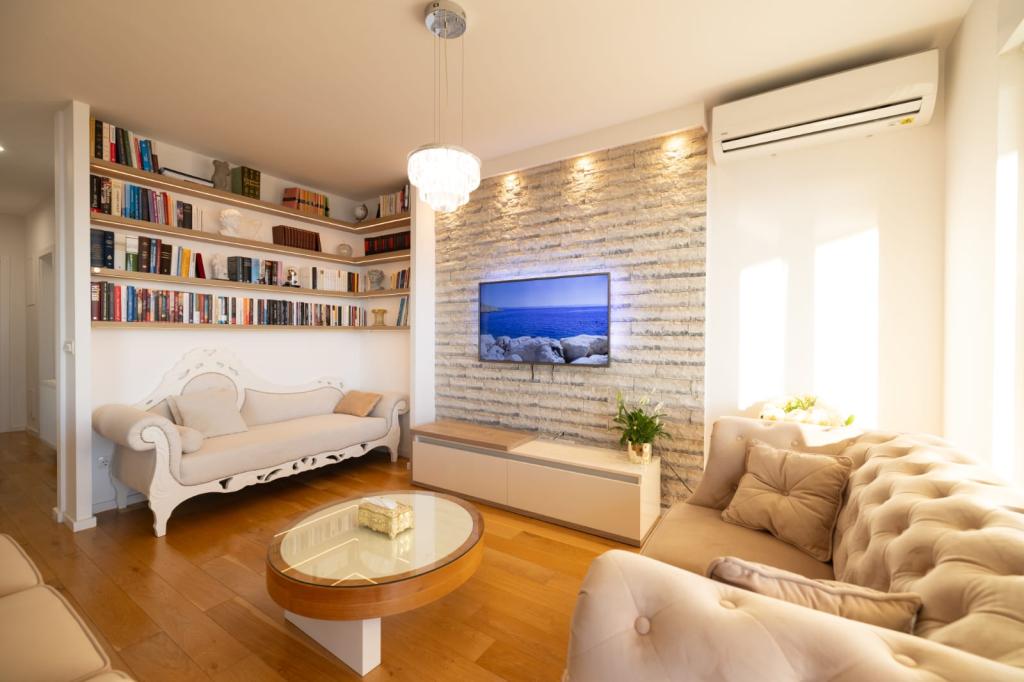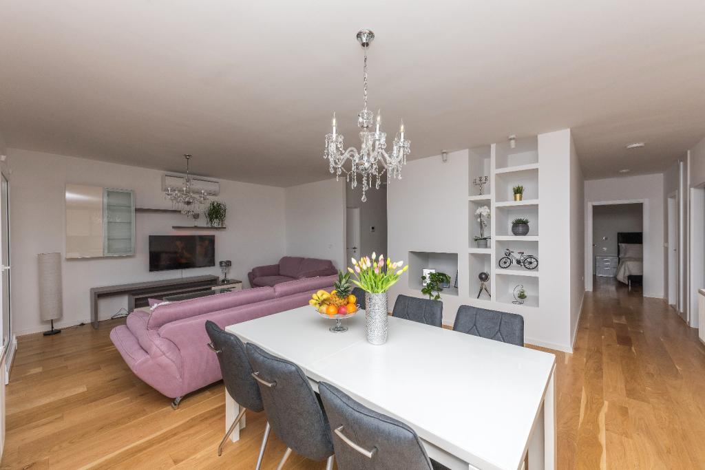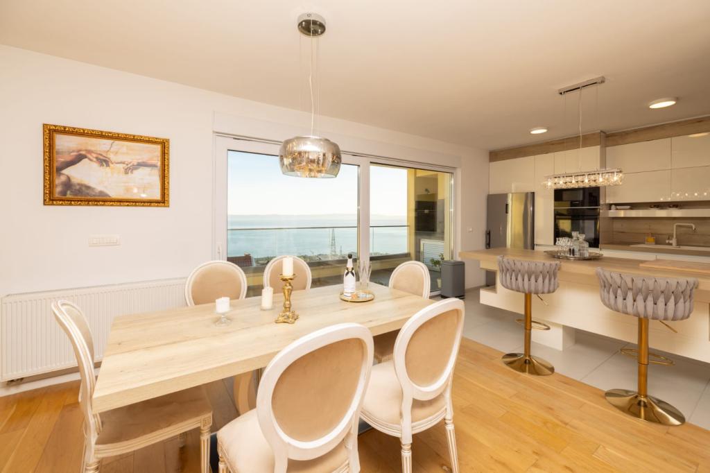 Penthouse Jure i Penthouse Nikola w Makarskiej to luksusowe i przestronne apartamenty o powierzchni 135 m², idealne na komfortowy i relaksujący pobyt. Każdy apartament składa się z trzech elegancko urządzonych sypialni, dwóch nowocześnie wyposażonych łazienek, garażu oraz dużego tarasu z przepięknym widokiem na morze i miasto, idealnego na relaks i odpoczynek. Położone w spokojnej okolicy, 2 km od centrum miasta i 1 km od morza, oferują idealne połączenie prywatności i bliskości wszelkich udogodnień.