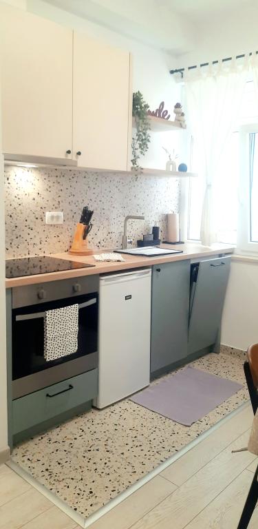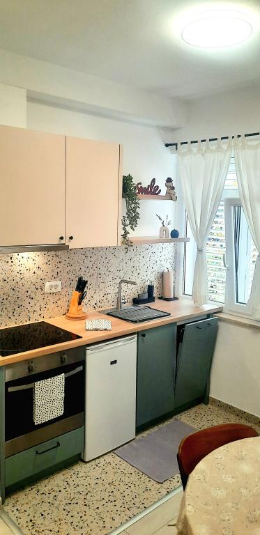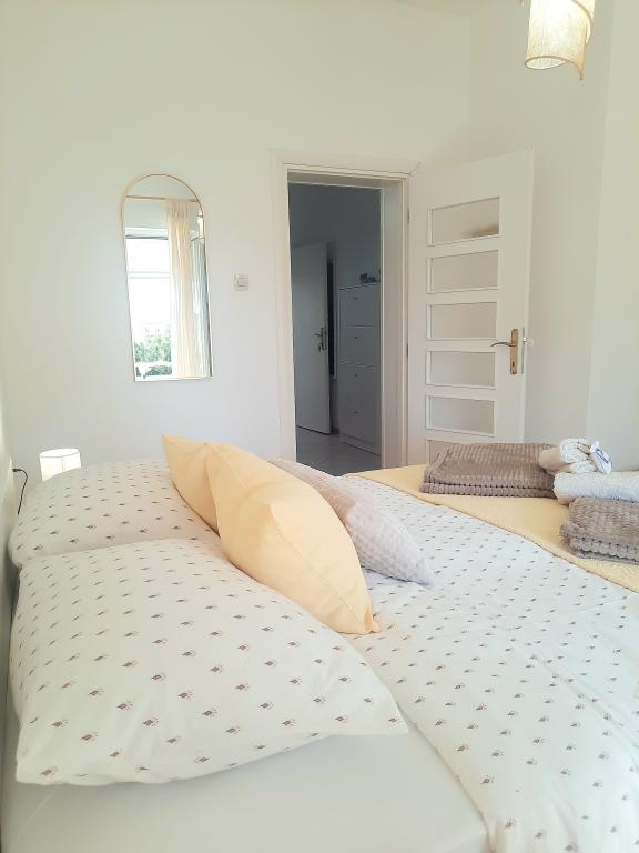 Niezwykle ładny i bardzo czysty apartament, wyposażony we wszystko, co niezbędne do komfortowego pobytu dla dwóch osób, w tym niemowlęcia lub małego dziecka. Pokoje są dokładnie takie, jak w opisie. Podwójne łóżko jest wystarczająco duże i bardzo wygodne z wysokiej jakości materacem, kuchnia oferuje wszystko, czego potrzebują osoby, które chcą gotować na wakacjach, nawet ściereczkę do naczyń. Parking znajduje się na podwórku. Lokalizacja jest cicha. Plaża, kawiarnie i restauracje znajdują się w odległości około pięćdziesięciu metrów, nabrzeże i sklepy również w pobliżu. Wszystko dla pięciu osób, a ukoronowaniem tego wszystkiego są gospodarze Martina i Ante, cudowne małżeństwo, które przyjęło nas tak, jakbyśmy znali się od dawna. Martina jest zawsze do dyspozycji, jeśli czegoś potrzebujesz. Bezinteresownie udziela wszelkich informacji, uwielbia kontakt z ludźmi, wręcz widać, że wkłada wiele wysiłku i miłości, aby każdy gość wrócił do domu z wielką satysfakcją. Martino, dziękuję za ten ogromny kawałek Twojego tortu i za „pierwszą pomoc” udzieloną w przypadku kontuzji. A, muszę jeszcze wspomnieć o pięknym, przytulnym kocie Peru, maskotce mieszkania.