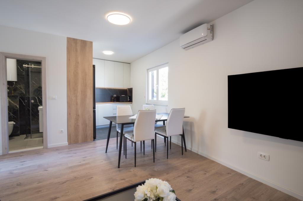 Maslina Apartments oferuje nowocześnie urządzone i przestronne apartamenty w spokojnej części Makarskiej, idealne dla par, rodzin i mniejszych grup. Zakwaterowanie znajduje się w spokojnej okolicy, z dala od miejskiego zgiełku, ale wystarczająco blisko, aby łatwo zwiedzić wszystko, co Makarska ma do zaoferowania. Wszystkie apartamenty są w pełni wyposażone – kuchnia, klimatyzacja, bezpłatne Wi-Fi – a także zapewniony jest prywatny parking. Oferujemy kilka jednostek, dzięki czemu możemy łatwo dostosować się do Twoich potrzeb. Jeśli szukasz komfortowego wypoczynku z dobrym połączeniem z plażą i centrum, ale bez hałasu i tłumów – Maslina Apartments to właściwy wybór dla Ciebie!