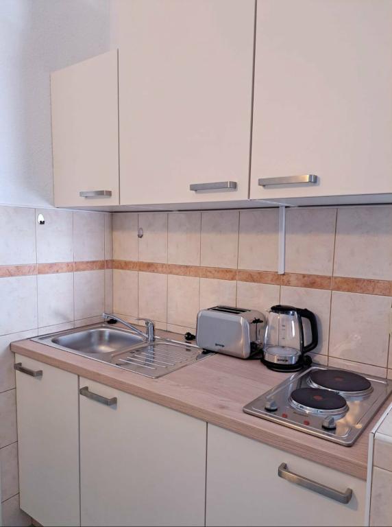 Oferujemy kilka apartamentów i apartamentów typu studio. Apartamenty i apartamenty typu studio są dwu-, trzy- i czteroosobowe. Każdy apartament i apartament typu studio posiada klimatyzację, balkon, w pełni wyposażoną kuchnię, łazienkę, TV i Wi-Fi. Ceny zaczynają się od 35 € za osobę i zależą od wybranego apartamentu. Zaleta: bliskość najpiękniejszych plaż na Riwierze Makarskiej, bez wchodzenia w miejskie tłumy. Wszystkie najpiękniejsze plaże znajdują się tuż pod nami i nie potrzebujesz nawet 2 minut jazdy samochodem, aby do nich dotrzeć. Znajdujemy się około 1 km od pierwszej i jednej z najpiękniejszych plaż w Makarskiej. Dojazd samochodem zajmuje około 2 minut. Poniżej nas znajdują się jedne z najczystszych i najpiękniejszych plaż w Makarskiej. Plaże w pobliżu: Plaża Buba Plaża Biloševac ️ Plaża Cubano ️ Plaża Cvitačka ️ Znajdujemy się około 300 m od pierwszego sklepu, sklepu mięsnego i kawiarni 100 m od pierwszej restauracji. Goście mają do dyspozycji bezpłatny parking tuż przed domem.