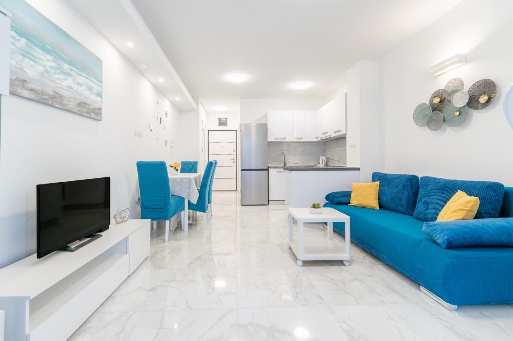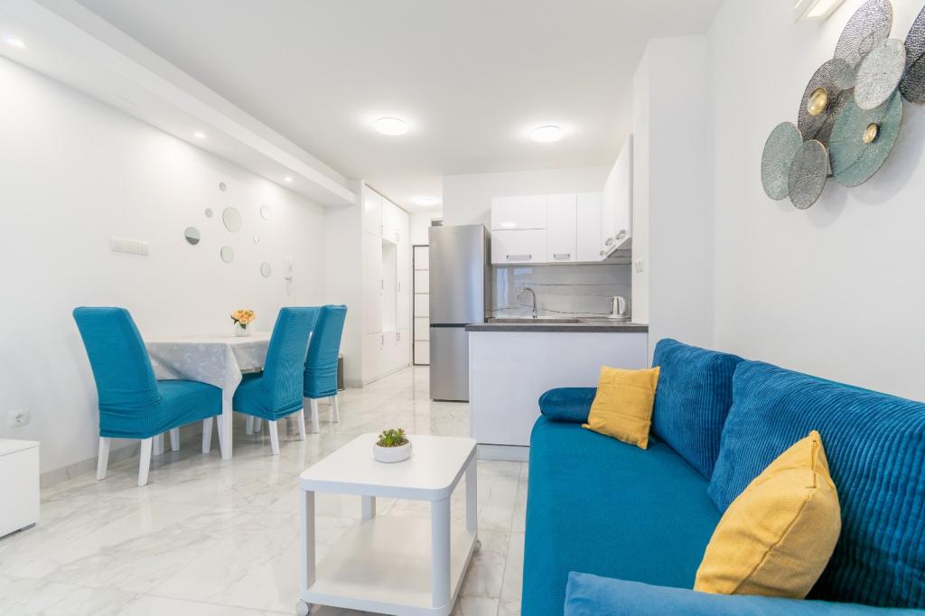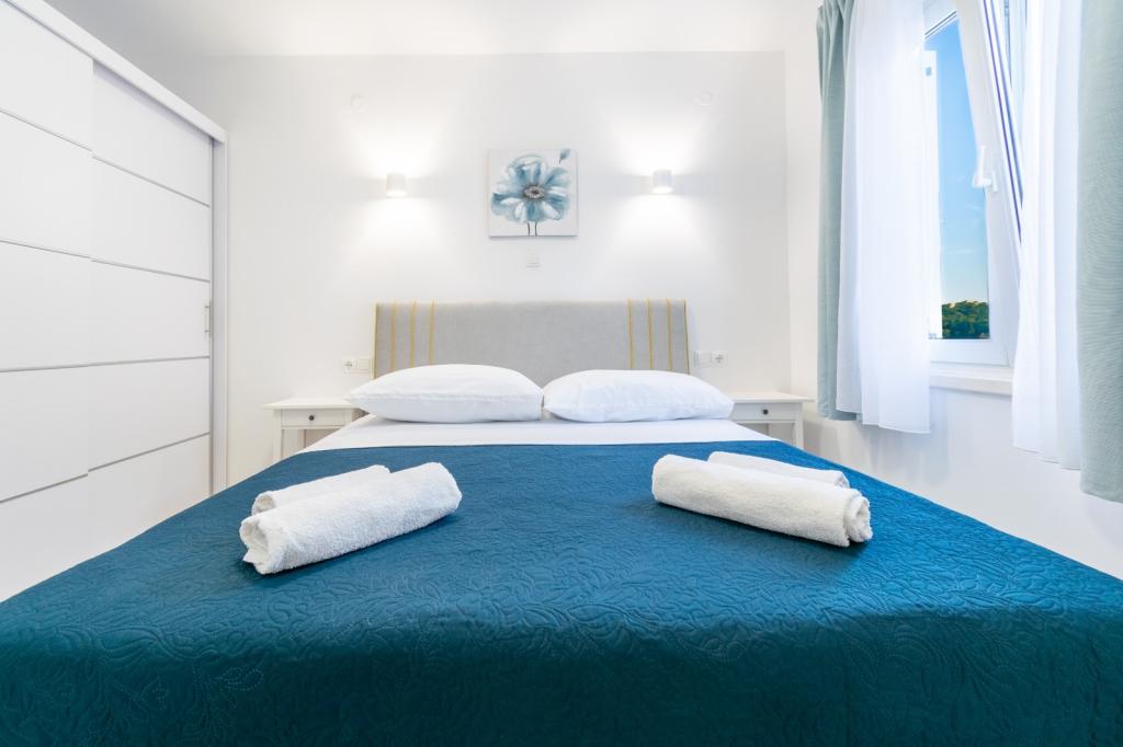 Oferujemy Państwu trzy apartamenty w TRZECH RÓŻNYCH LOKALIZACJACH. Wszystkie apartamenty są klimatyzowane i wyposażone w Wi-Fi. - PIERWSZY APARTAMENT Z WIDOKEM NA MORZE (4+1) ID:14915 znajduje się w centrum miasta przy ulicy Gradišćanskih Hrvata 14, 300 m od plaży. Składa się z dwóch sypialni, łazienki, w pełni wyposażonej kuchni oraz salonu z tarasem, z którego roztacza się piękny widok na morze i wyspy. Apartament posiada własne miejsce parkingowe. - DRUGI APARTAMENT ŁATWY (4+1) ID:63248 znajduje się w centrum miasta przy ulicy Kralja Petra Krešimira IV 7b, 70 m od plaży. Apartament składa się z dwóch sypialni, łazienki, kuchni oraz salonu. Apartament znajduje się na wysokim parterze. W bezpośrednim sąsiedztwie znajdują się sklepy, apteka, bank, restauracje. Parking dla samochodów. - TRZECI APARTAMENT NIEBIESKI (3+1) ID: 77271 znajduje się przy ulicy Zrinsko-frankopanskiej 39, 500 m od centrum miasta i pierwszej plaży. Składa się z sypialni, salonu, w pełni wyposażonej kuchni, łazienki i balkonu. Miejsce parkingowe przed budynkiem. W pobliżu znajdują się sklepy i kawiarnie.