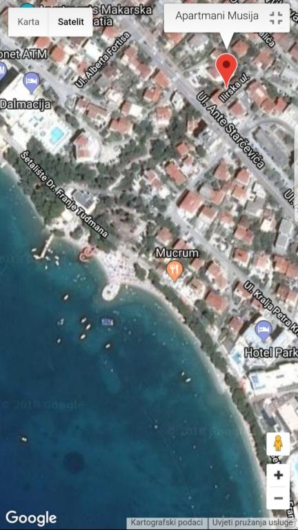 Apartamenty Musija składają się z 5 apartamentów w tym samym budynku z bezpiecznym parkingiem. W pełni i nowocześnie wyposażone apartamenty położone są w spokojnej części Makarskiej, 5 minut spacerem od plaży i 10-15 minut spacerem od centrum miasta. W bezpośrednim sąsiedztwie znajdują się sklepy, restauracje oraz inne dodatkowe atrakcje i udogodnienia rekreacyjne, gwarantujące niezapomniane wakacje.
