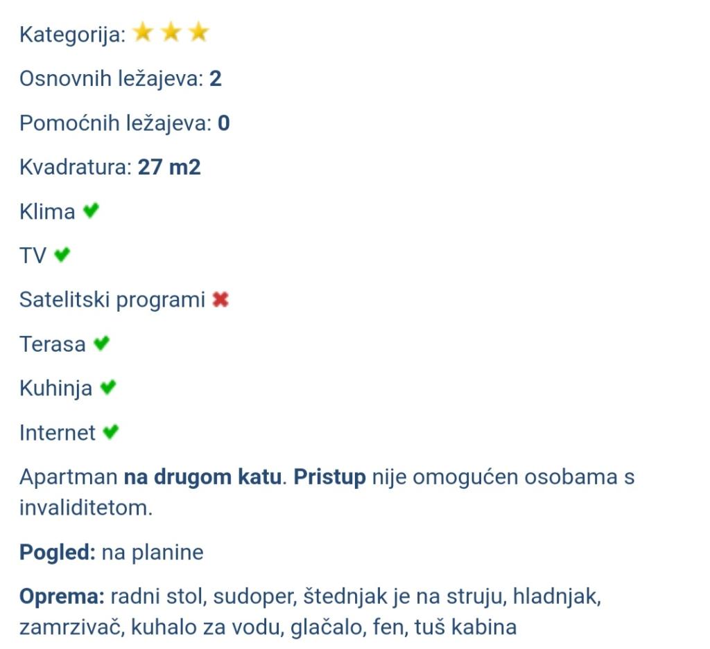 Wszystkie pochwały dla naszej uroczej gospodyni, są bardzo mili i zawsze do usług. Jeśli chodzi o mieszkanie, wszystko jest schludne, czyste i urządzone, gospodyni codziennie rano sprząta, myje podwórko i schody, wszystko jest na najwyższym poziomie. Byliśmy tam w zeszłym roku, jesteśmy ponownie w tym roku i mamy nadzieję, że także w przyszłym. Polecam każdemu kto pragnie wypoczynku i bardzo miłej komunikacji z gospodynią czyli naszą Musiją.