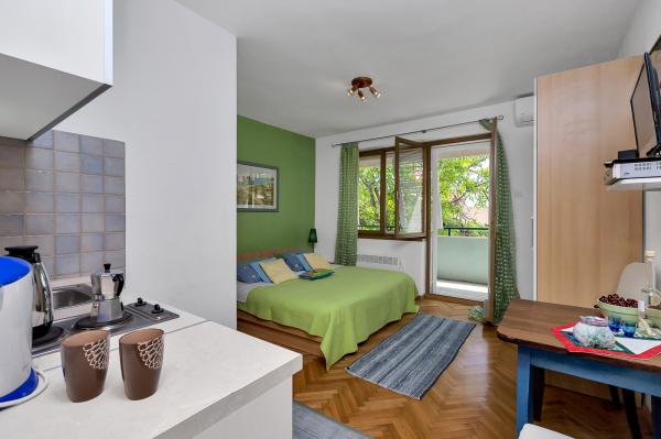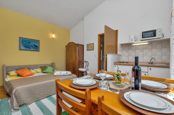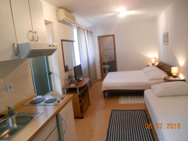 Zostańcie w studio przez 10 dni, para. W studiu jest wszystko czego potrzeba - jest schludnie, czysto, wystarczająco duże szafy, wyposażona kuchnia i łazienka, klimatyzacja, balkon z którego widać morze. Tak jak na zdjęciach. Parking jest zapewniony. Lokalizacja jest świetna, ponieważ do plaży można dojść w kilka minut, centrum Makarskiej jest kilka minut spacerem, w pobliżu znajduje się dworzec autobusowy, sklepy, restauracje, piekarnie i sprzedaż owoców. Gospodyni jest bardzo przyjazna, odpowiada na pytania podczas rezerwacji i przed przyjazdem, a podczas pobytu jest bardzo dostępna i przyjazna. O rozsądnej cenie. Naprawdę wysoka pochwała i bardzo zadowolony z naszego pobytu. Zdecydowanie polecam!