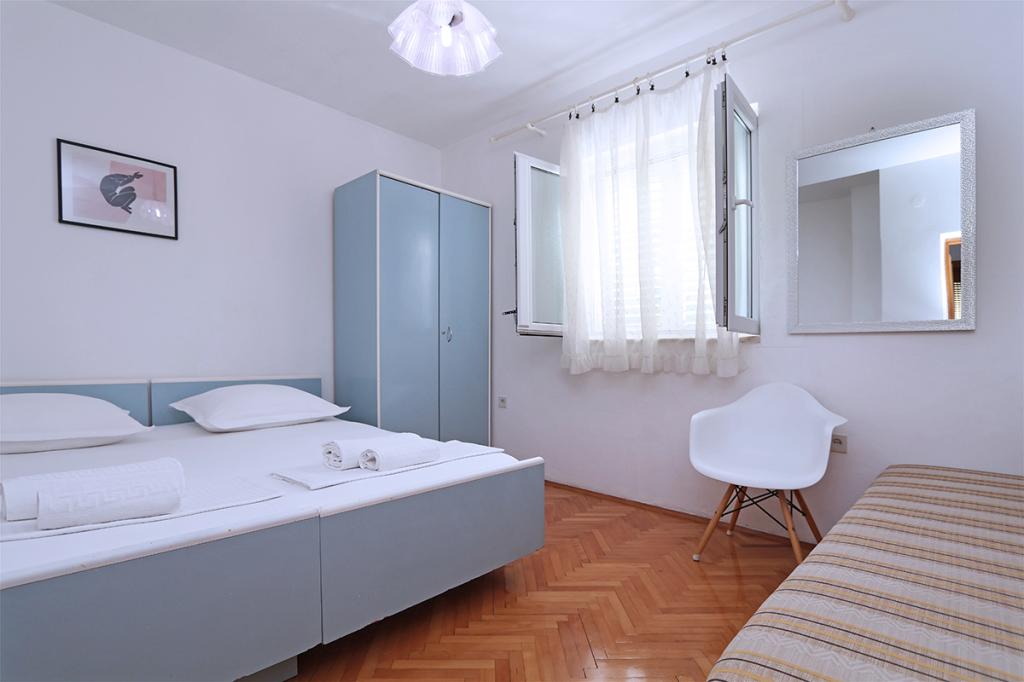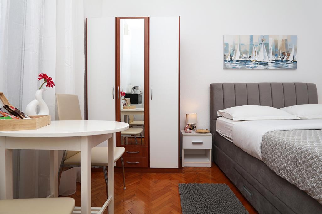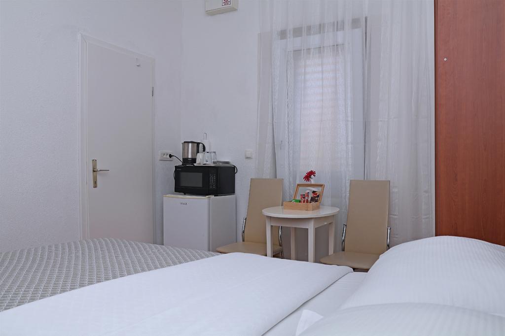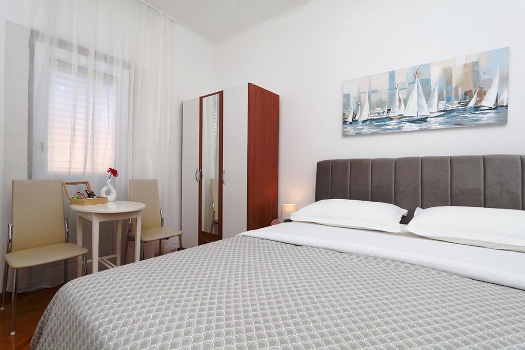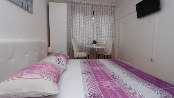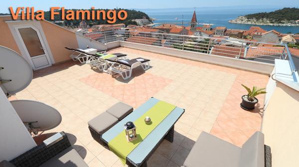 Apartamenty i pokoje Villa Flamingo położone są w centrum miasta, z dala od głównej drogi, w cichym otoczeniu z dużym ogrodem i parkingiem. Wszystko zlokalizowane jest w centrum miasta, apartamenty znajdują się 100 metrów od głównego placu, 300 metrów od nabrzeża, 500 metrów od plaży. Apartamenty znajdują się z dala od głównej drogi, co gwarantuje spokojny i cichy wypoczynek. Przed domem, w ogrodzie, znajduje się duży kominek, gdzie można przygotować dania z grilla i zjeść kolację w pięknym otoczeniu naszego ogrodu. Z balkonu roztacza się widok na morze i port miejski, a także wyspy Brač i Hvar. Wszystkie apartamenty są klimatyzowane, wyposażone w telewizję satelitarną i internet WiFi. Po uzgodnieniu z gośćmi organizujemy transport z lotniska do apartamentu. W apartamentach dostępny jest bezprzewodowy internet. Na szczycie domu znajduje się duży taras z przepięknym widokiem na morze i miasto, dostępny dla wszystkich gości. Istnieje możliwość zorganizowania śniadania, obiadu, kolacji w pobliskiej restauracji.
