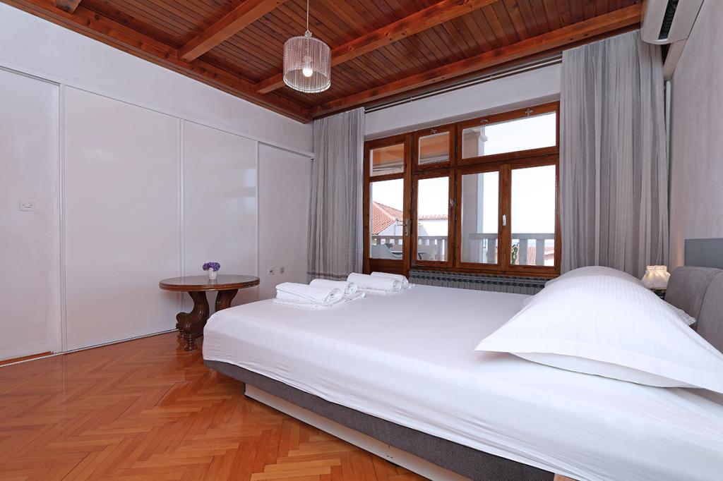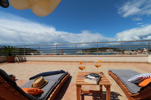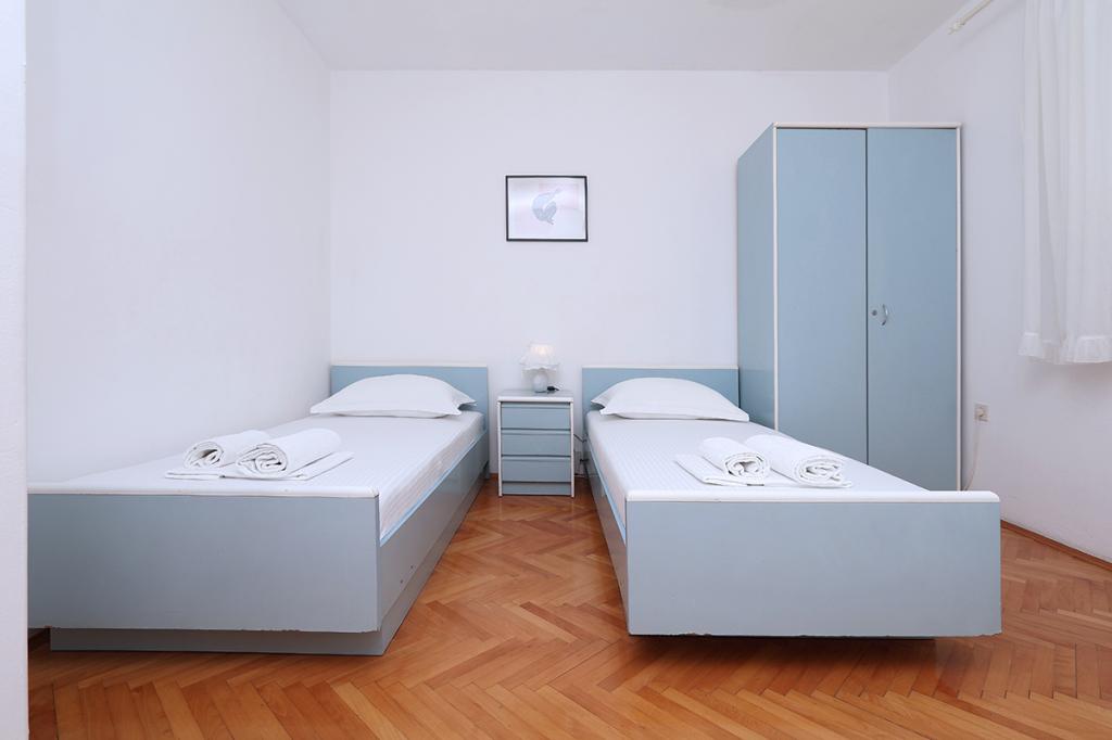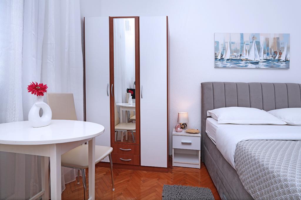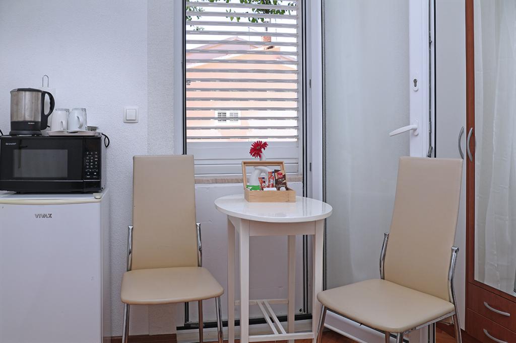 Apartamenty i pokoje Villa Flamingo położone są w centrum miasta, z dala od głównej drogi, w cichym otoczeniu z dużym ogrodem i parkingiem. Wszystko zlokalizowane jest w centrum miasta, apartamenty znajdują się 100 metrów od głównego placu, 300 metrów od nabrzeża, 500 metrów od plaży. Apartamenty znajdują się z dala od głównej drogi, co gwarantuje spokojny i cichy wypoczynek. Przed domem, w ogrodzie, znajduje się duży kominek, gdzie można przygotować dania z grilla i zjeść kolację w pięknym otoczeniu naszego ogrodu. Z balkonu roztacza się widok na morze i port miejski, a także wyspy Brač i Hvar. Wszystkie apartamenty są klimatyzowane, wyposażone w telewizję satelitarną i internet WiFi. Po uzgodnieniu z gośćmi organizujemy transport z lotniska do apartamentu. W apartamentach dostępny jest bezprzewodowy internet. Na szczycie domu znajduje się duży taras z przepięknym widokiem na morze i miasto, dostępny dla wszystkich gości. Istnieje możliwość zorganizowania śniadania, obiadu, kolacji w pobliskiej restauracji.