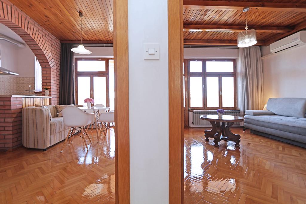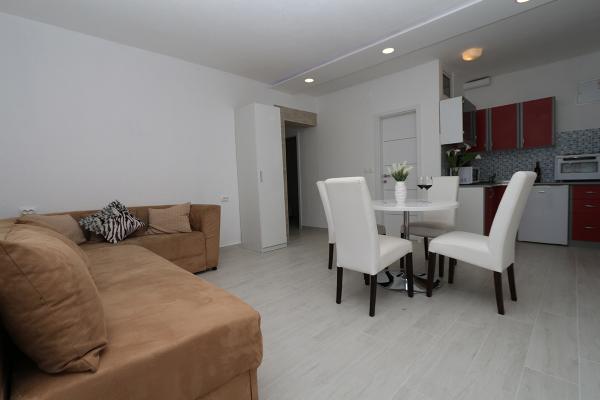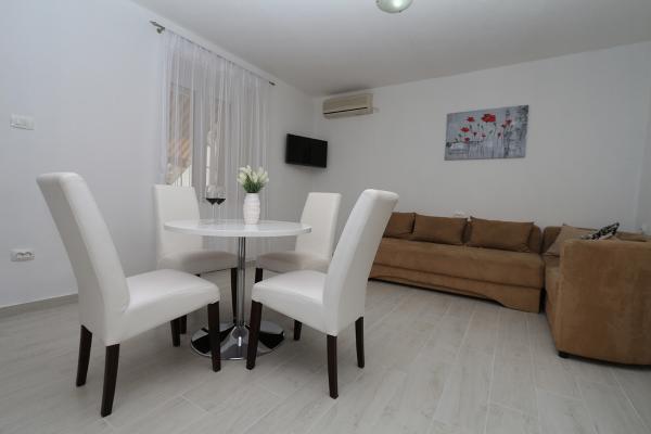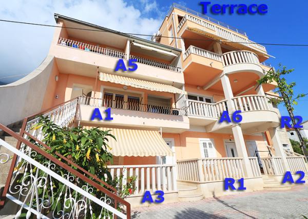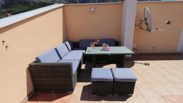 Fantastyczne apartamenty, dwie duże łazienki i trzy sypialnie z piękny prywatny taras z widokiem na dobrze utrzymany ogród i grill. Incredible gościnni gospodarze - właściciele byli bardzo przyjazny, ciepły i miły i zawsze witał nas rano, aby sprawdzić, czy wszystko było w porządku. Mieliśmy szczęście, aby spędzić noc z właścicielem degustacja lokalnego grappa słuchając o historii i Chorwacji pierwszej ręki. Niesamowita lokalizacja, 10 min spacerem do plaży, 5 min do głównego centrum z supermarketów i wiele bankomatów i 5 minut spacerem do dworca autobusowego, jeśli przyjeżdżasz z Dubrownika i Splitu. Na górze świetna obsługa i lokalizacji, nie było niesamowite dachu balkon taras z zapierającym dech w piersiach widokiem na Makarską i wyspy, chciałbym powiedzieć jedną z najlepszych w mieście.
