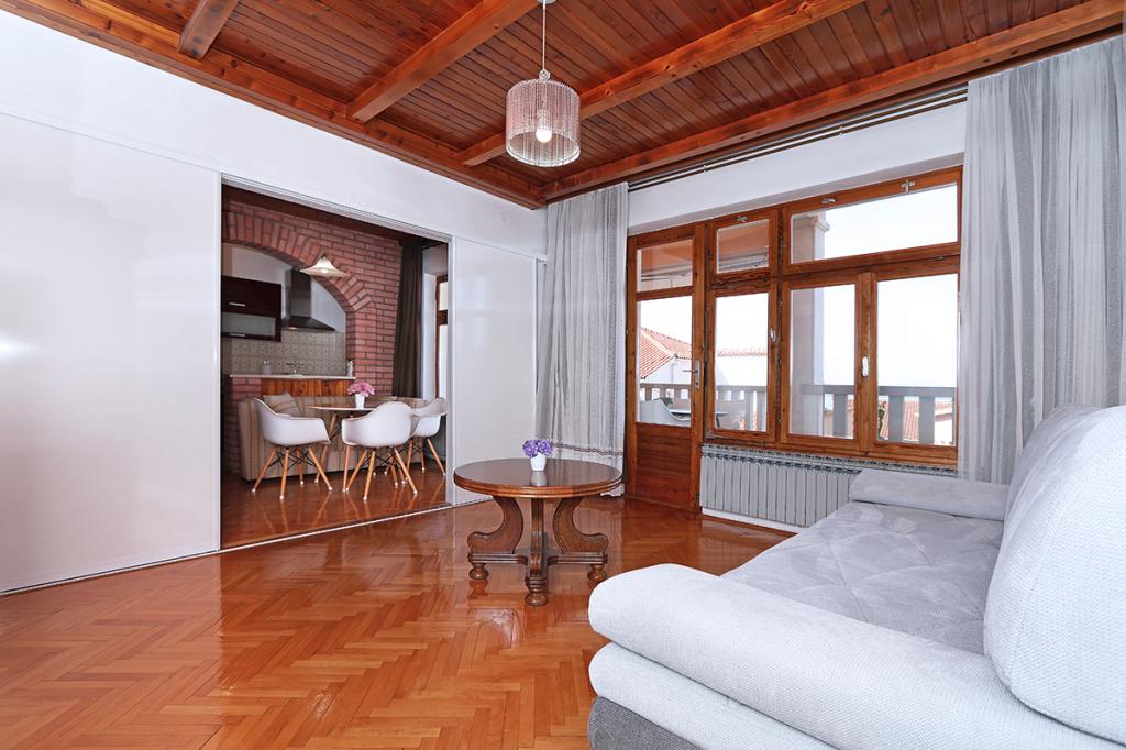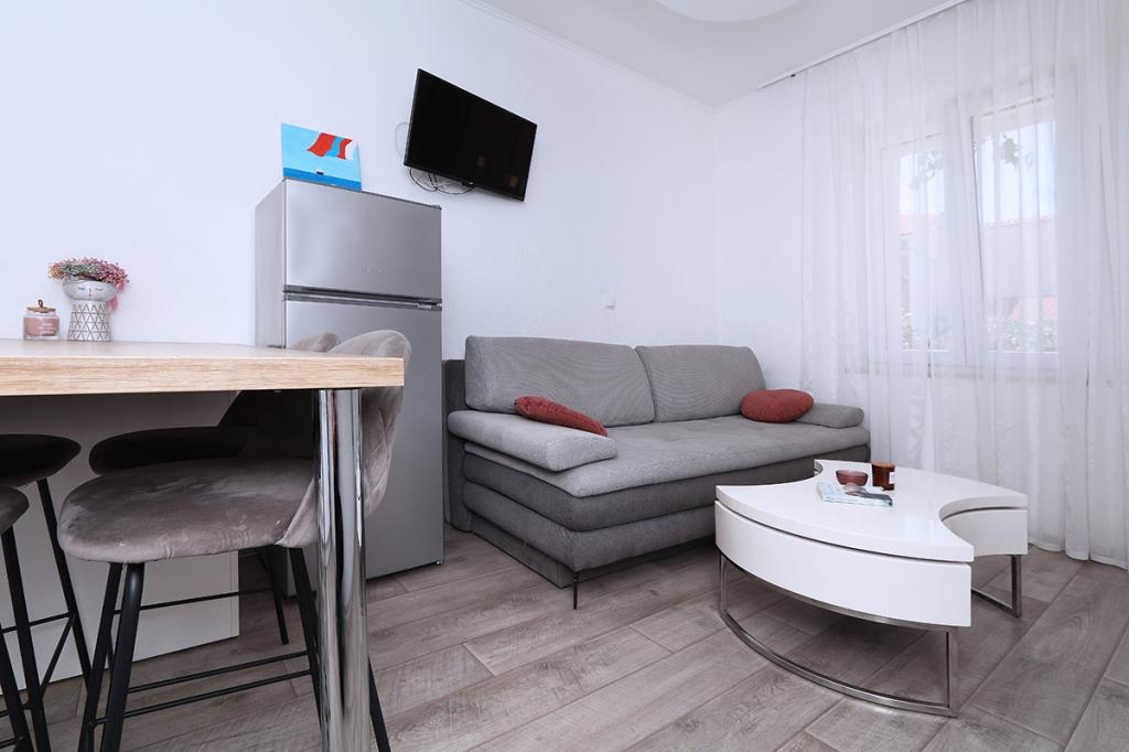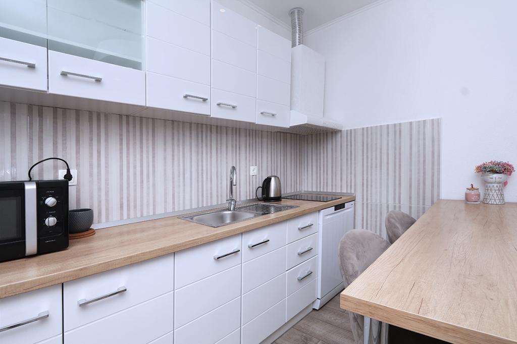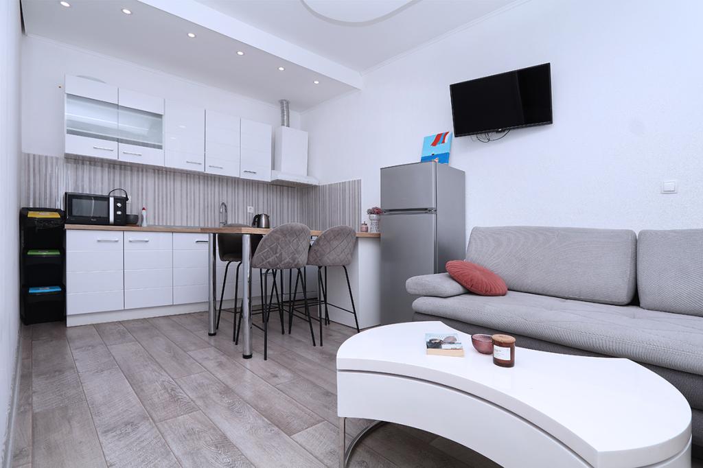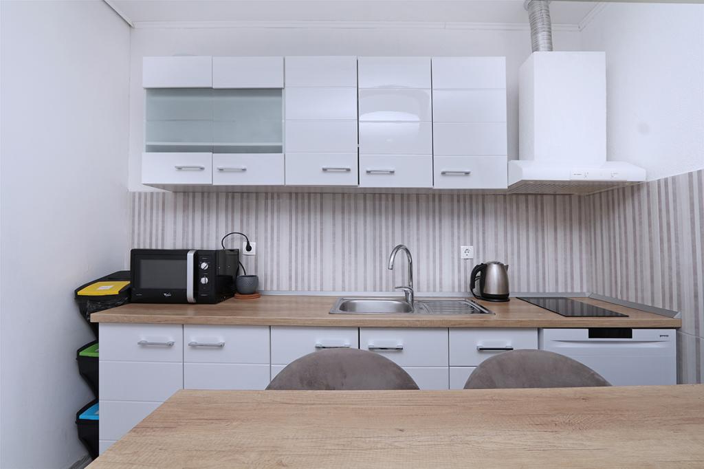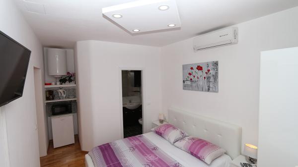 Zakwaterowanie było bardzo wygodne dla naszej rodziny (2 dorosłych i 16-letniego syna), wystarczająco duże i dobrze wyposażone. Kuchnia jest nowoczesna i zawiera wszystko, czego potrzebujesz (kuchenka, mikrofalówka, czajnik, zlew i naczynia), służy bezpośrednio jako salon z dużym pokojem i jednocześnie miejscem do spania dla naszych dorosłych. Sypialnia udostępniana jest jako osobne pomieszczenie - ergonomiczne i kompaktowe: z podwójnym łóżkiem i szafą. Sypialnia znajduje się w zacienionej części mieszkania i oferuje chłodną przestrzeń. Łazienka jest ogromna i ma dużą wannę z prysznicem. Jest tam w pełni funkcjonalna pralka, a nawet suszarka do włosów. Niestety zauważyliśmy tylko jedną wadę: klimatyzacja nie działa prawidłowo. Znajduje się w korytarzu i powinno chłodzić całe mieszkanie, wystarczy przewietrzyć. Mieszkanie ma własny taras, który jest piękny. W kompleksie mieszkalnym na wyższym poziomie znajduje się duży taras dla wszystkich gości, z którego roztacza się wspaniały widok na morze, stare miasto i miasto jako całość. Po prostu bardzo przydatny do podziwiania zachodów słońca. Jesteśmy na wakacjach w Makarskiej po raz piąty i dlatego możemy porównać z poprzednimi kwaterami: to był TOP apartament z bardzo przyjaznymi gospodarzami i piękną lokalizacją w centrum starego miasta.
