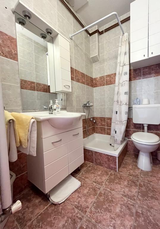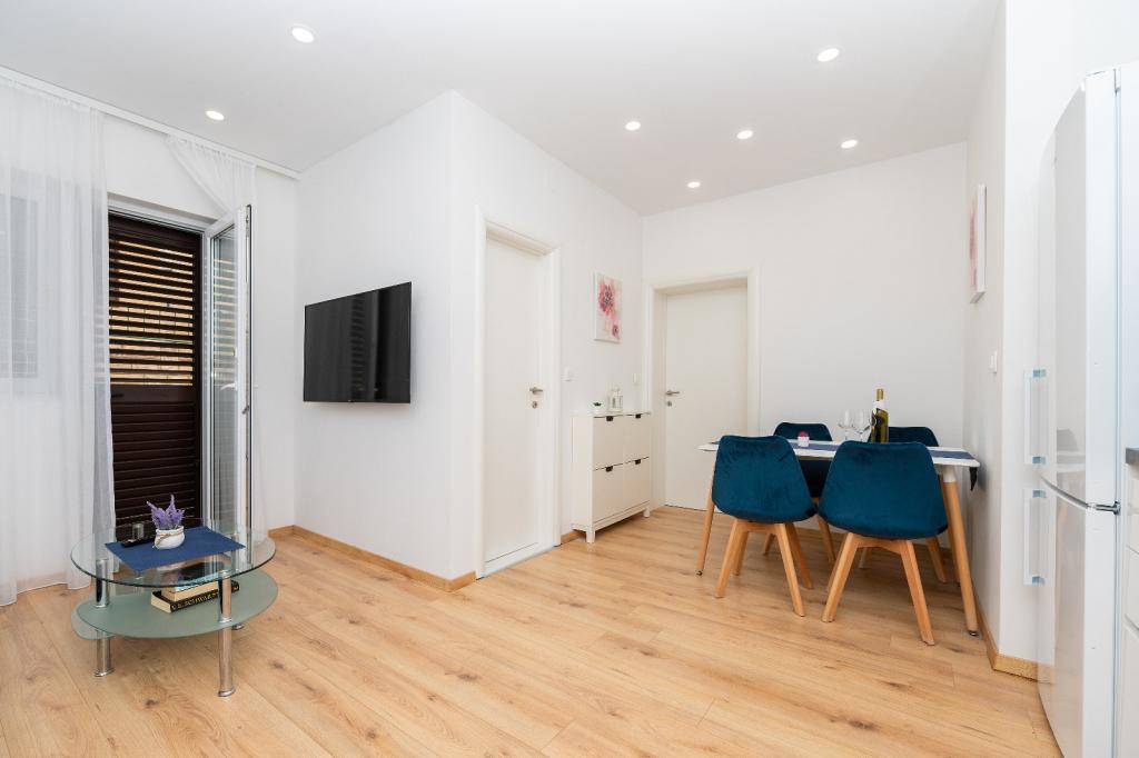 Apartamenty Sani są w pełni i nowocześnie wyposażone. Sypialnie są dwuosobowe, z podwójnymi łóżkami i łazienkami. Chętnie przyjmujemy większą rodzinę lub grupę przyjaciół, którzy lubią pierwszą kawę na tarasie lub kieliszek wina o zachodzie słońca. W ogrodzie znajduje się grill z meblami ogrodowymi. Restauracje i plaże znajdują się w odległości od 3 do 10 minut spacerem od obiektu, są tu różne atrakcje turystyczne, park dla dzieci, restauracje, dyskoteki, centrum sportowe, a jeśli to nie wystarczy, możesz codziennie odwiedzać nasze wyjątkowe wyspy na łodziach wycieczkowych. lub Ogród Botaniczny Góry Biokovo, która wznosi się nad miastem. Gospodarze są mili i profesjonalni, gotowi być zawsze do usług.