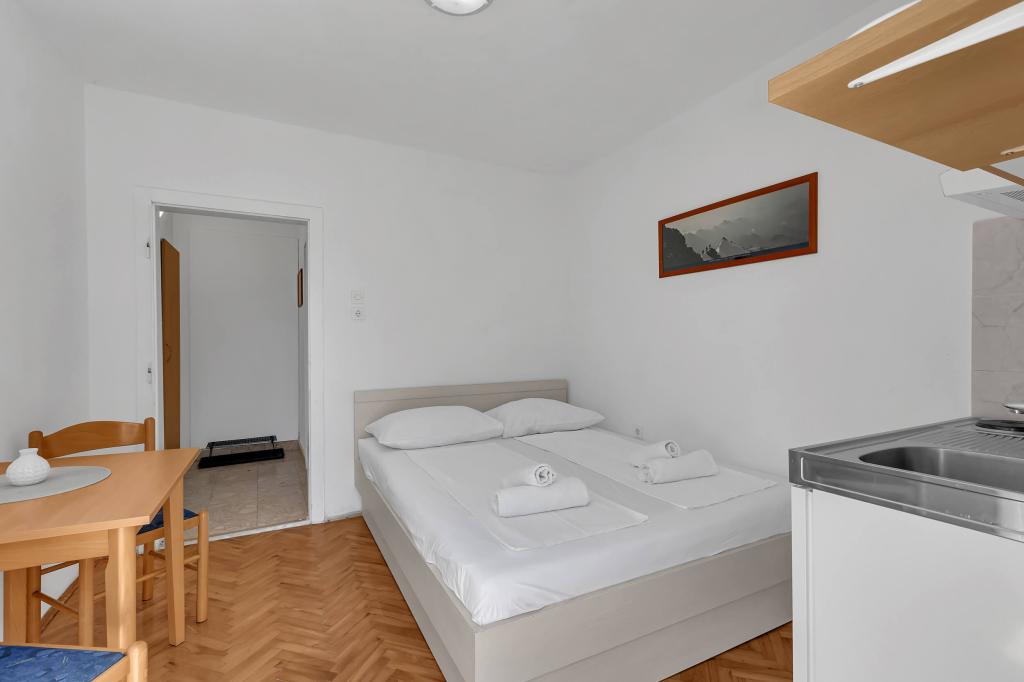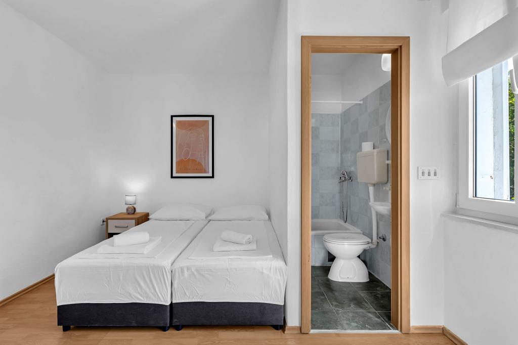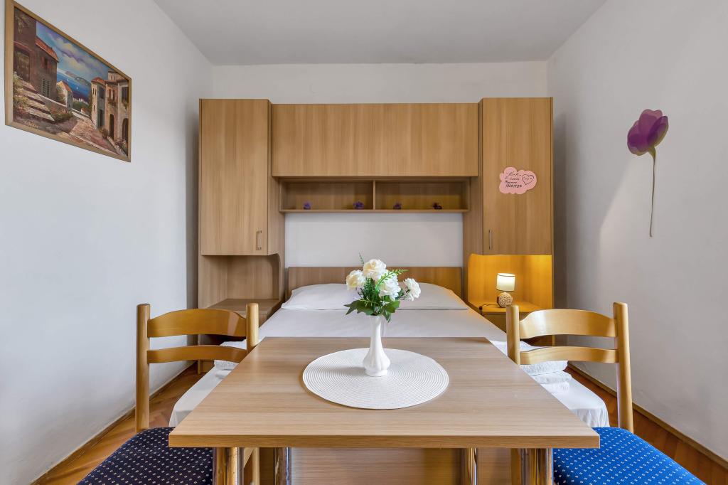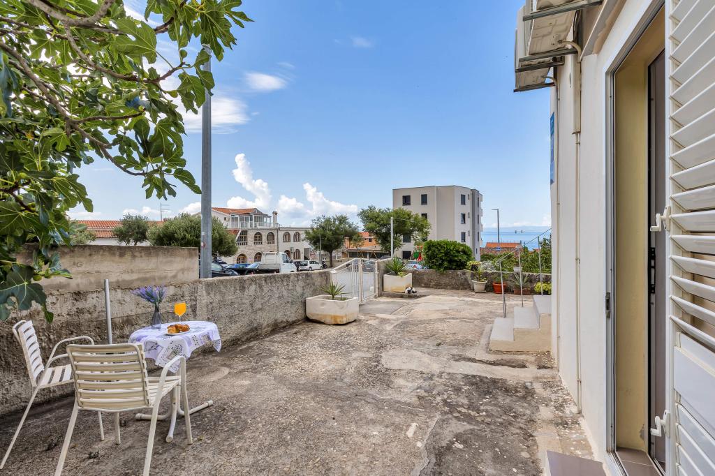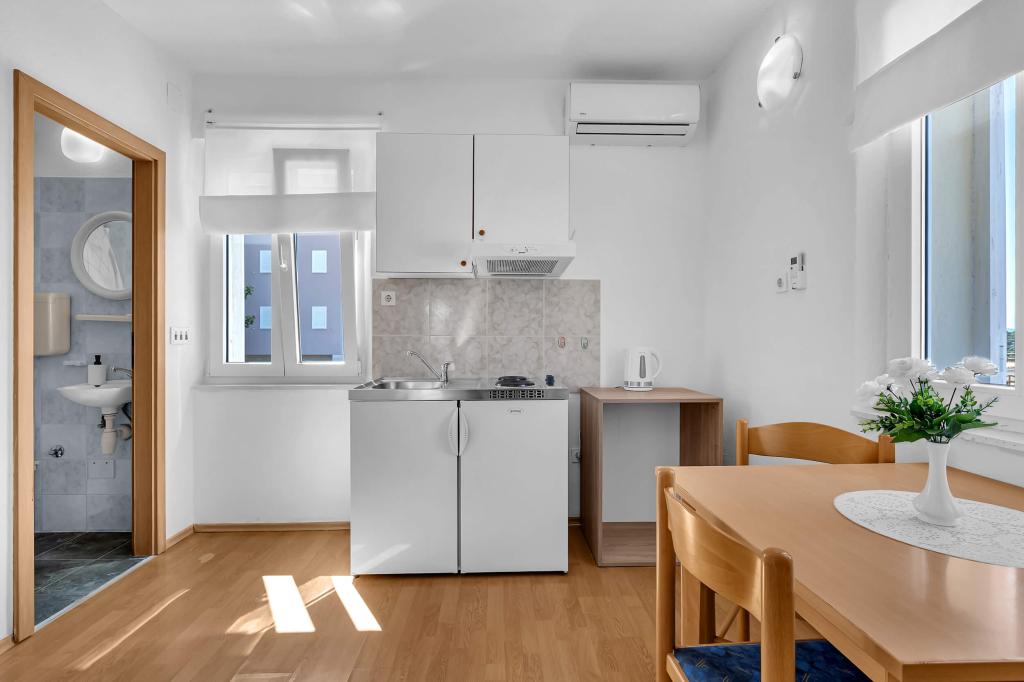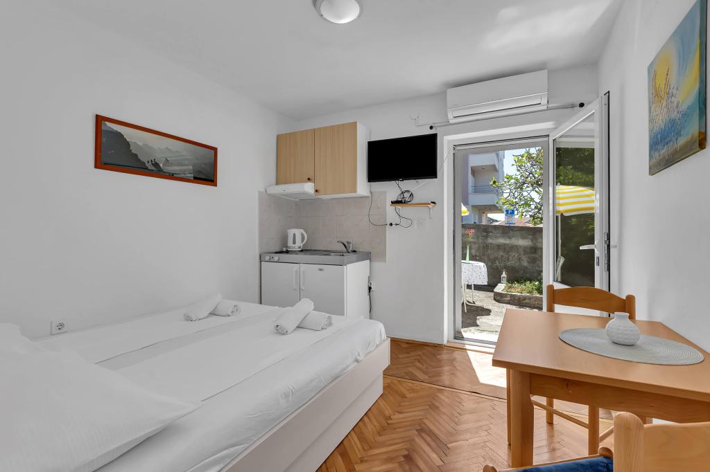Dom z 4 apartamentami typu studio. Położony blisko wszystkich głównych udogodnień, głównego placu 300 m, rynku 300 m, plaży 700 m, głównej promenady (riva 350m).