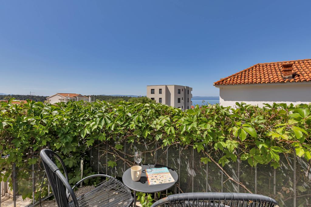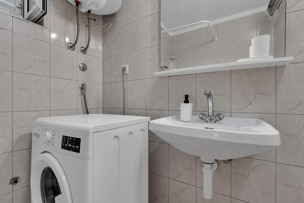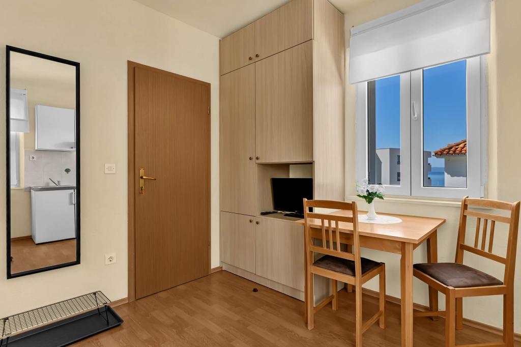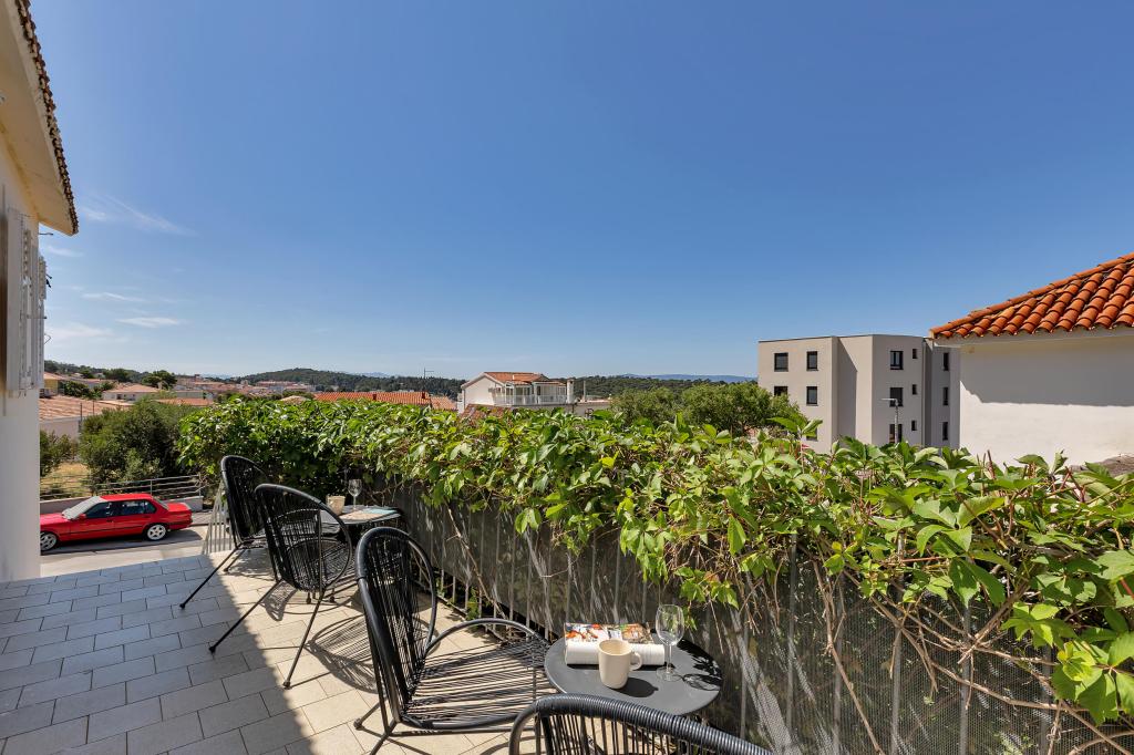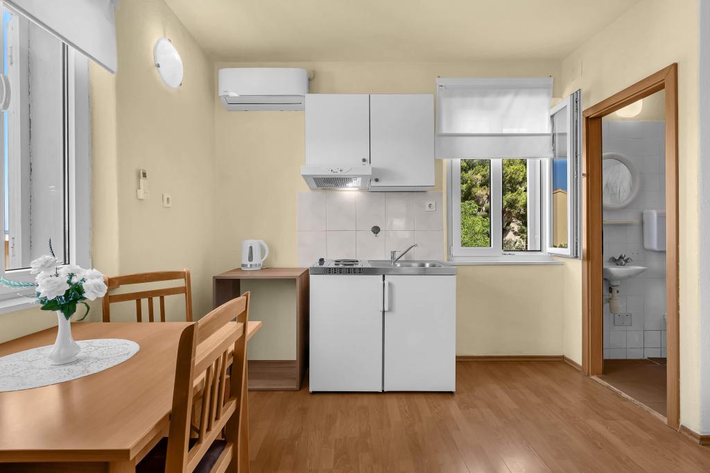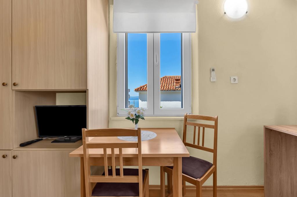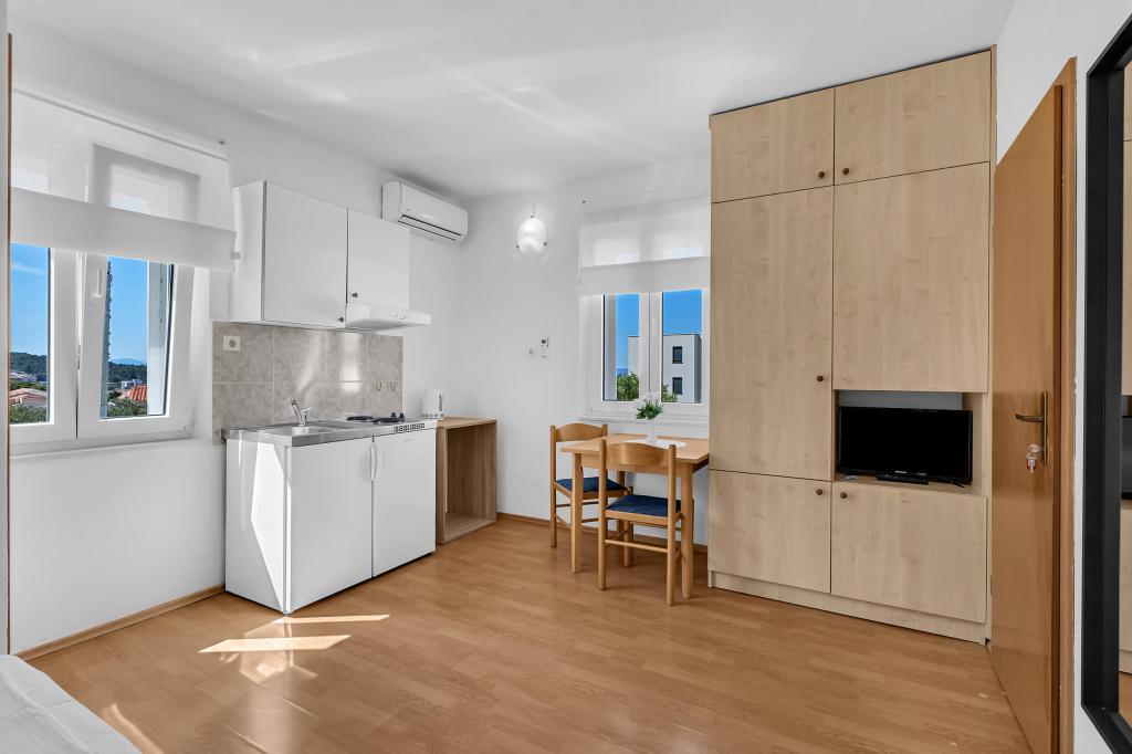 Dom z 4 apartamentami typu studio. Położony blisko wszystkich głównych udogodnień, głównego placu 300 m, rynku 300 m, plaży 700 m, głównej promenady (riva 350m).