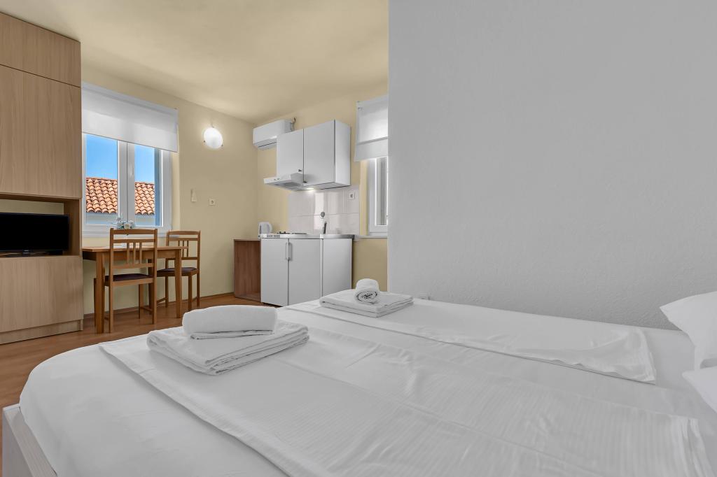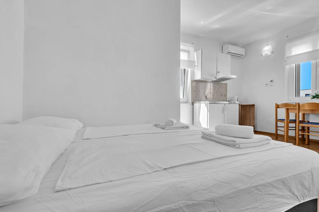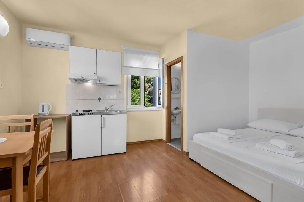 W cenę wliczone są: Klimatyzacja Opłata dzienna 1 EUR/osoba/noc Miejsce parkingowe Ręczniki (nie wymieniane codziennie) Pościel (wymieniana co 5-7 dni w zależności od długości pobytu) Końcowe sprzątanie apartamentu Internet Wi-Fi