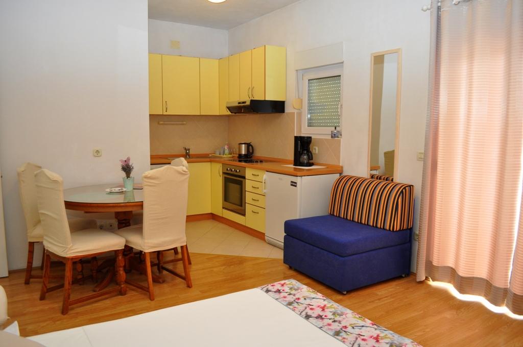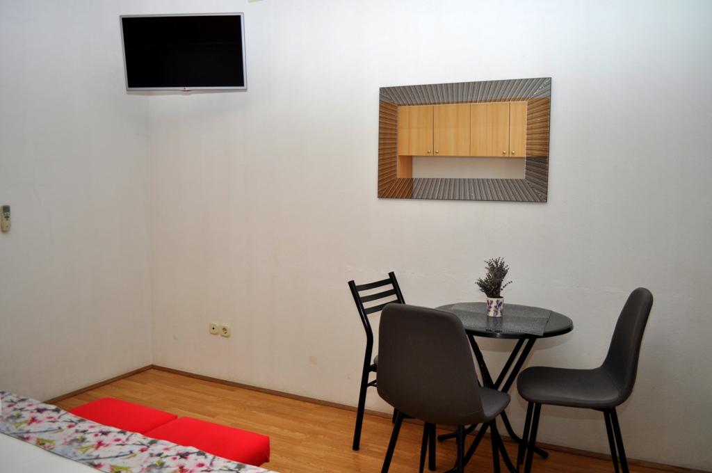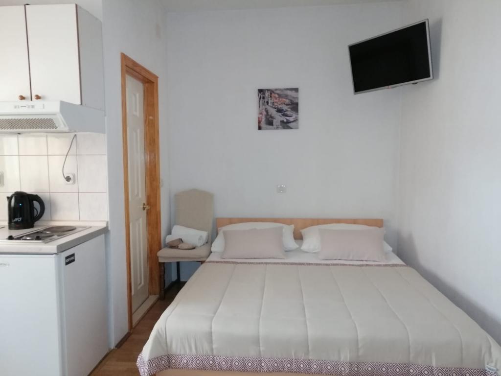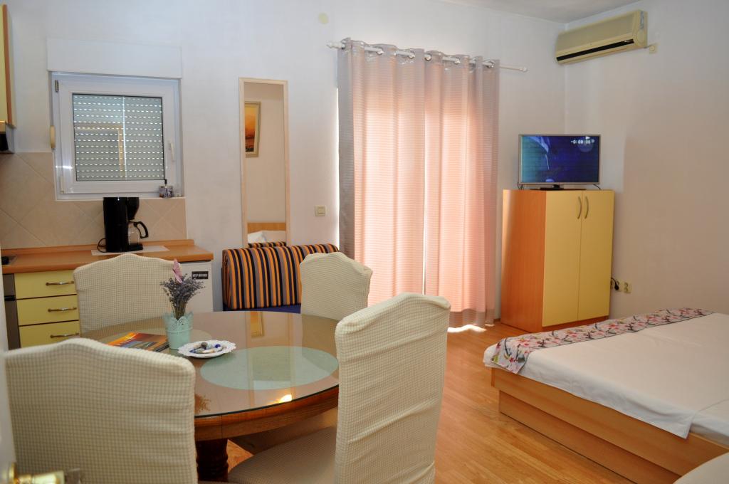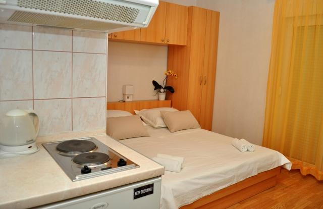 Apartamenty Veselko znajdują się w spokojnej części Makarskiej, w dzielnicy Zelenka. Na drugim piętrze domu rodzinnego znajdują się 4 apartamenty (2 od strony południowej z balkonem i widokiem na morze, 1 od strony północnej z balkonem i widokiem na góry oraz 1 od strony północnej z tarasem i widokiem na Biokovo i częściowo na morze). Wszystko jest w pełni wyposażone: łóżka podwójne (+dodatkowe 200x90 cm), mini kuchnia, łazienka, klimatyzacja, telewizor Smart TV + telewizja satelitarna, internet. Bezpłatny parking dla wszystkich gości znajduje się za domem. Tylko 8 minut do plaży i 15-20 minut spacerem do centrum.