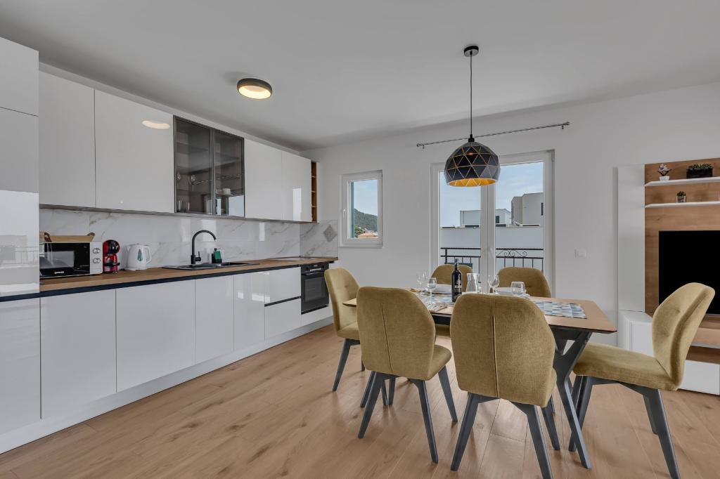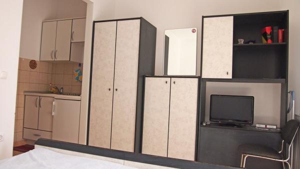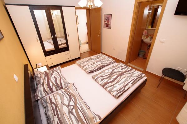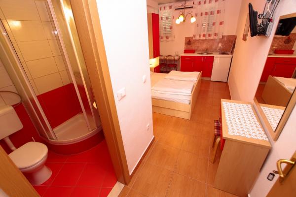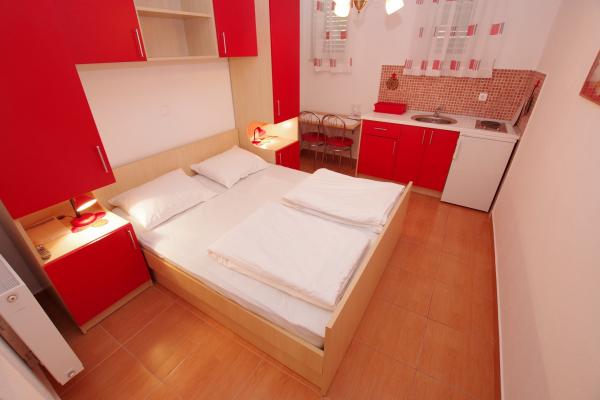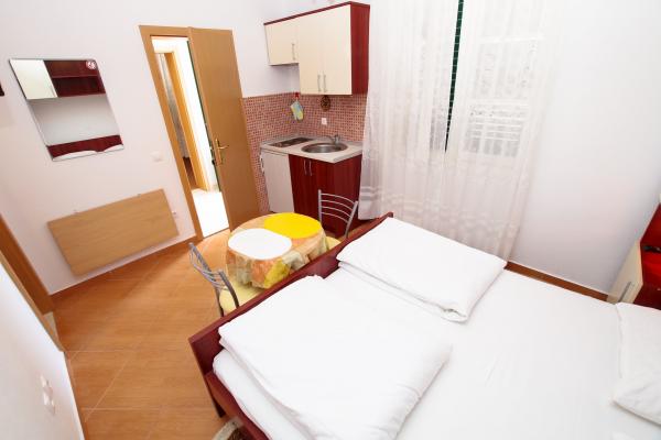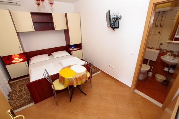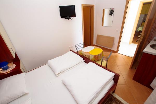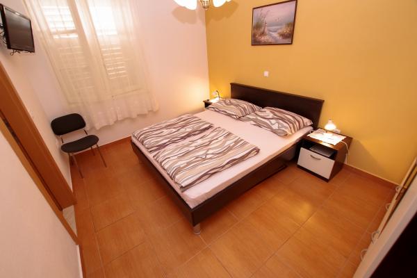 Nasze obiekty noclegowe znajdują się wewnątrz domu, w którym mieszkamy. Oprócz bezpiecznego parkingu na terenie domu, zapewniliśmy wszystkim gościom telewizory, klimatyzację i dostęp do szybkiego internetu Wi-Fi. Znajdujemy się kilka minut spacerem od centrum i morza, podczas gdy jesteśmy około 10 minut spacerem od plaży. Na parterze znajdują się trzy apartamenty typu studio dla dwóch osób i jeden dla trzech osób, natomiast na pierwszym piętrze znajdują się dwa apartamenty typu studio dla dwóch osób. Na drugim piętrze znajduje się nowo wybudowany apartament dla czterech osób sklasyfikowany jako cztery gwiazdki, o powierzchni ponad 90 metrów kwadratowych i balkonie o powierzchni ponad 50 metrów kwadratowych. Apartament składa się z dwóch sypialni, dwóch łazienek, dużego salonu z kuchnią i dwóch balkonów. Jest całkowicie nowo umeblowany we wszystkie niezbędne sprzęty, takie jak pralka i zmywarka, kuchenka mikrofalowa, lodówka, trzy klimatyzatory…