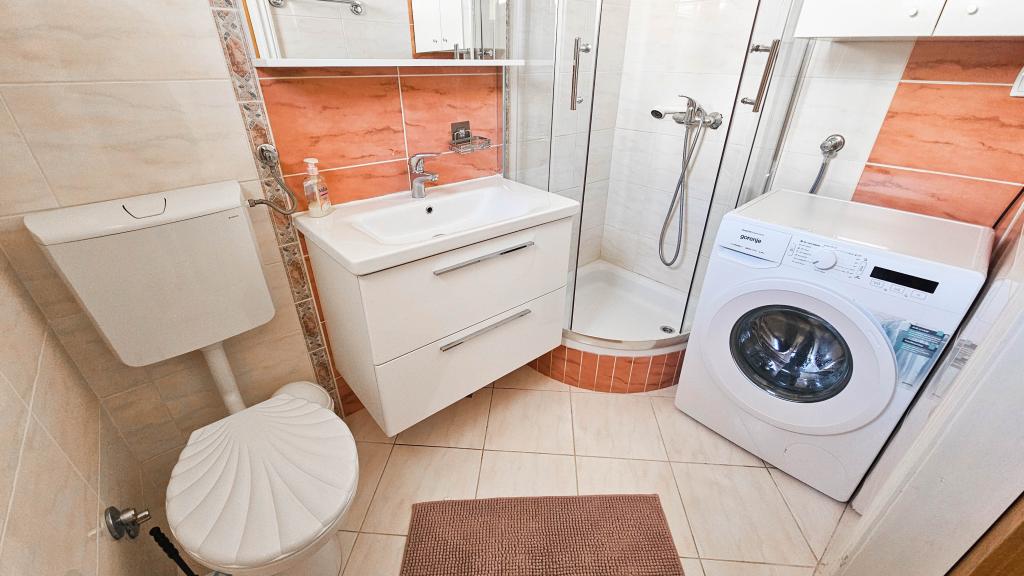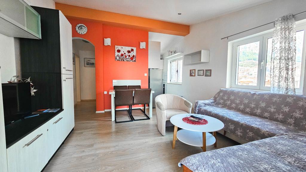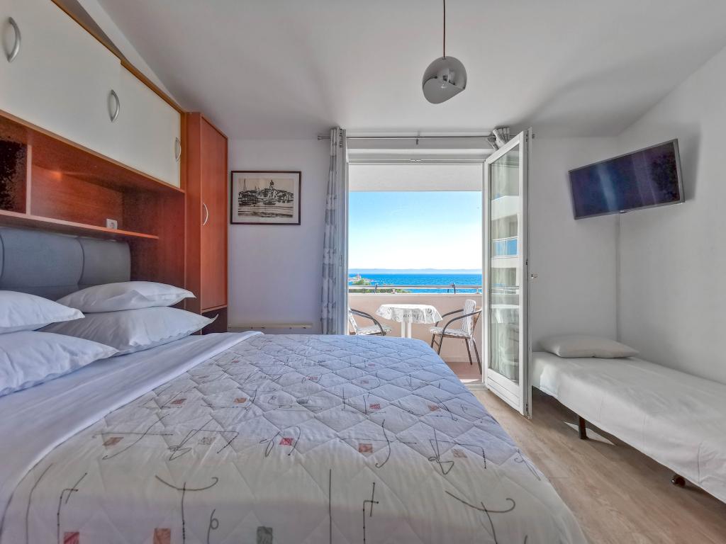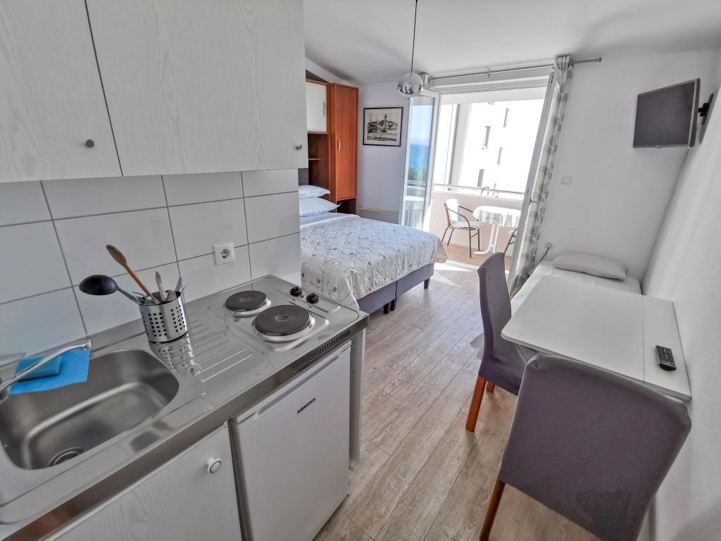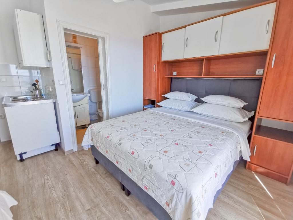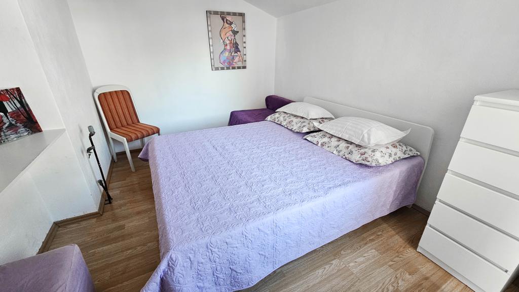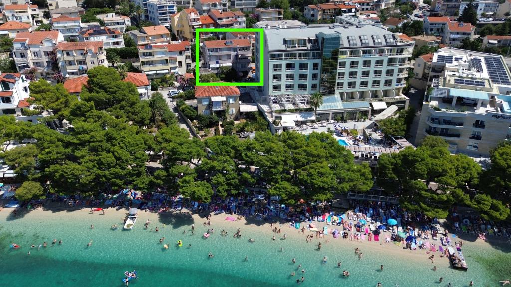 Blisko plaży w Makarskiej - 70 metrów od głównej plaży (około 1 minuty spacerem) Bezpłatny parking Bezpłatne Wi-Fi Bezpłatne korzystanie z klimatyzacji Nasze apartamenty: V1 - apartament dla 5 osób, parter, jedno duże łóżko i jedno łóżko pojedyncze w pokoju oraz jedna rozkładana sofa w salonie V2 - studio dla 3 osób, trzecie piętro, jedno duże łóżko i jedno łóżko pojedyncze, balkon z widokiem na morze V3 - studio dla 3 osób, trzecie piętro, jedno duże łóżko i jedno łóżko pojedyncze, balkon z widokiem na morze V4 - apartament dla 4 osób, trzecie piętro, jedno duże łóżko w pokoju oraz jedna rozkładana sofa w salonie, balkon z widokiem na morze V5 - apartament dla 5 osób, trzecie piętro, jedno duże łóżko i jedna mała rozkładana sofa w pokoju oraz jedna duża rozkładana sofa w salonie, balkon z widokiem na morze, kuchnia, łazienka/WC Wszystkie apartamenty mają własną kuchnię i łazienkę/WC. W sprawie cen i innych pytań prosimy o kontakt.