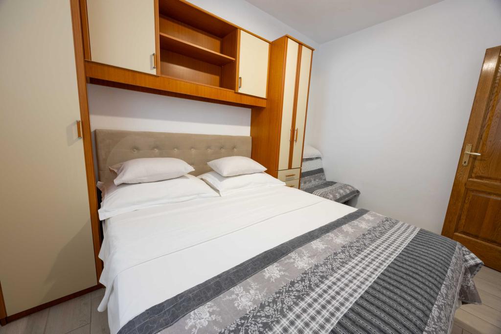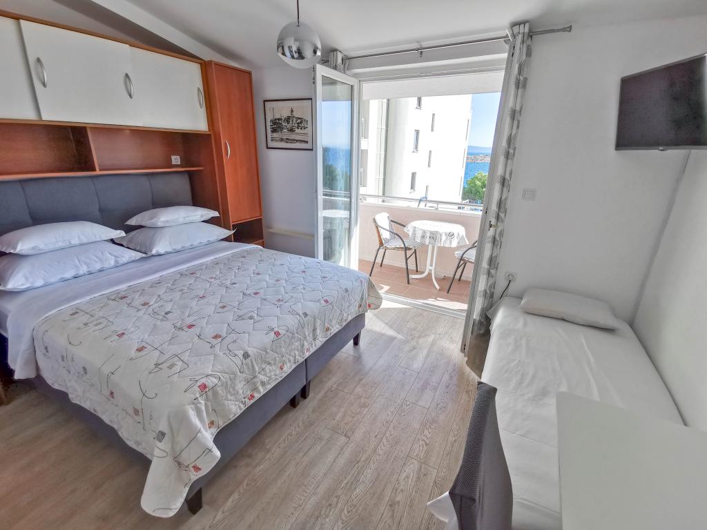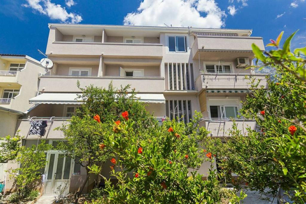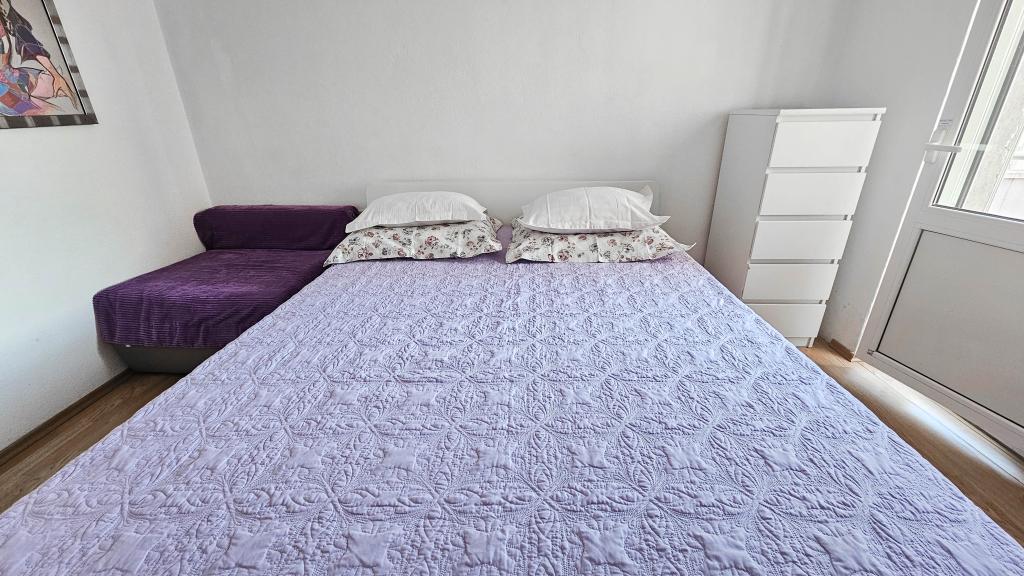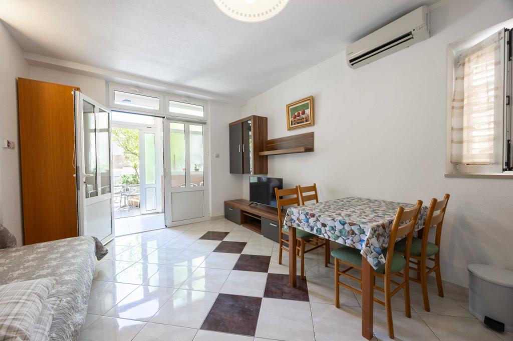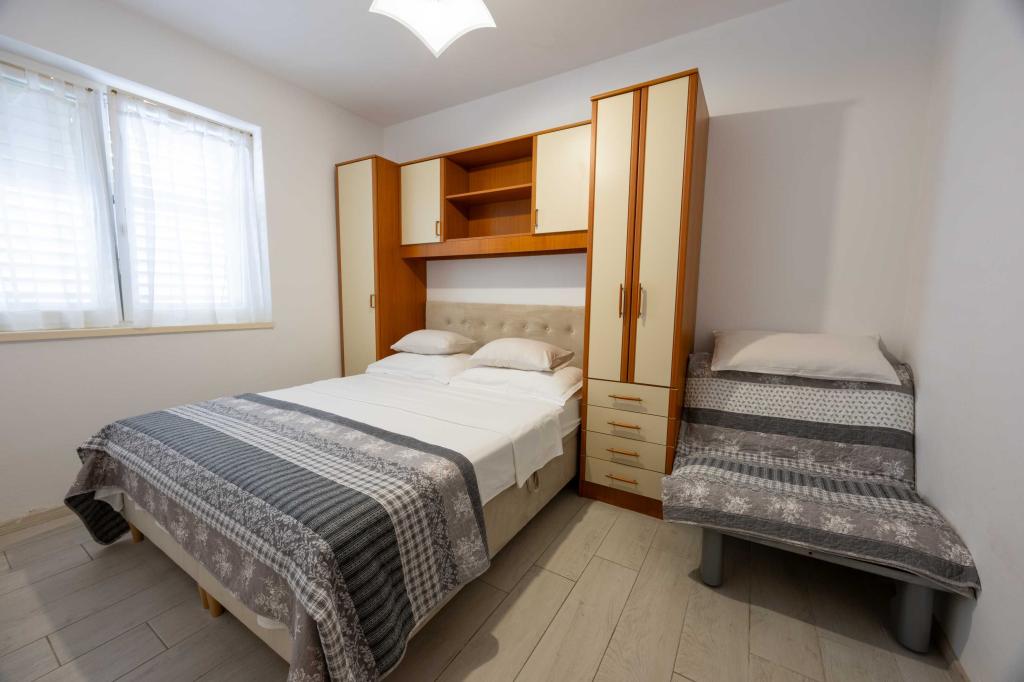 Blisko plaży w Makarskiej - 70 metrów od głównej plaży (około 1 minuty spacerem) Bezpłatny parking Bezpłatne Wi-Fi Bezpłatne korzystanie z klimatyzacji Nasze apartamenty: V1 - apartament dla 5 osób, parter, jedno duże łóżko i jedno łóżko pojedyncze w pokoju oraz jedna rozkładana sofa w salonie V2 - studio dla 3 osób, trzecie piętro, jedno duże łóżko i jedno łóżko pojedyncze, balkon z widokiem na morze V3 - studio dla 3 osób, trzecie piętro, jedno duże łóżko i jedno łóżko pojedyncze, balkon z widokiem na morze V4 - apartament dla 4 osób, trzecie piętro, jedno duże łóżko w pokoju oraz jedna rozkładana sofa w salonie, balkon z widokiem na morze V5 - apartament dla 5 osób, trzecie piętro, jedno duże łóżko i jedna mała rozkładana sofa w pokoju oraz jedna duża rozkładana sofa w salonie, balkon z widokiem na morze, kuchnia, łazienka/WC Wszystkie apartamenty mają własną kuchnię i łazienkę/WC. W sprawie cen i innych pytań prosimy o kontakt.