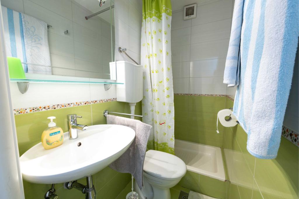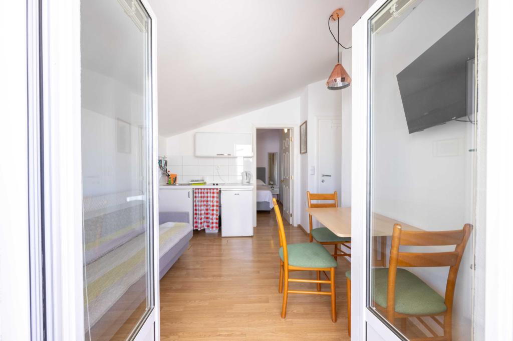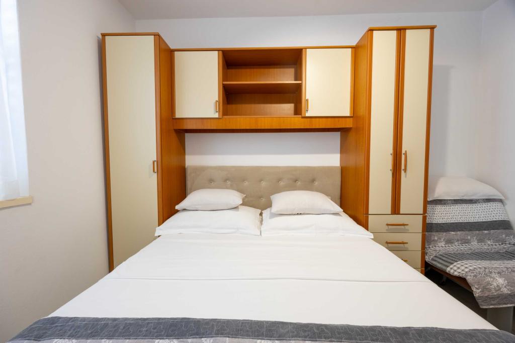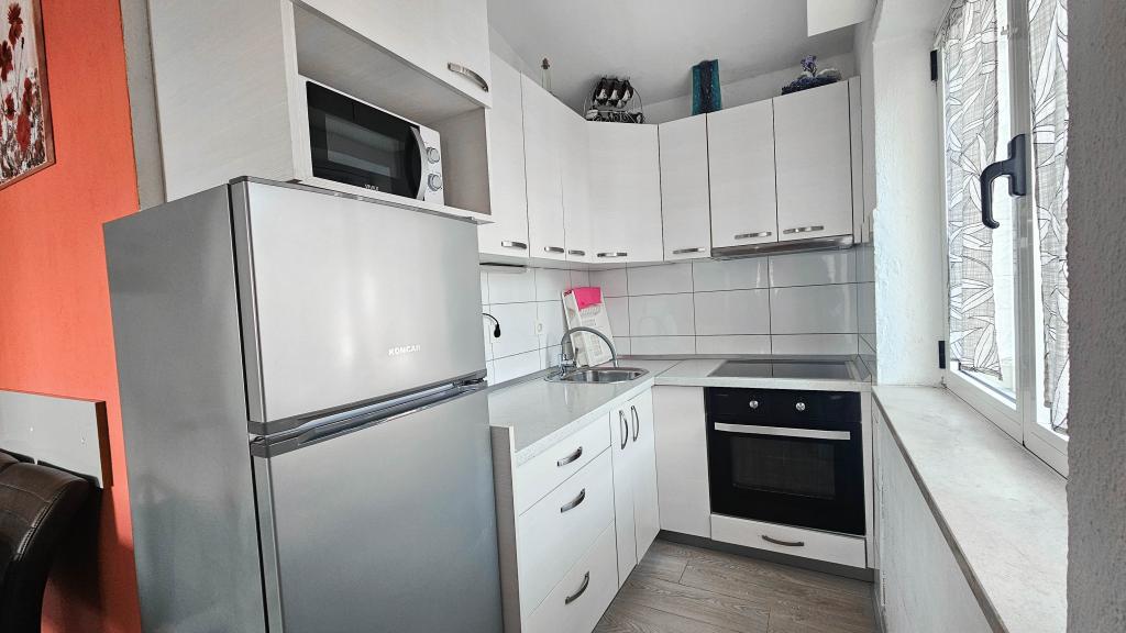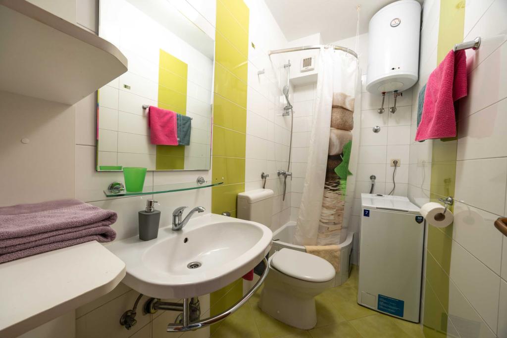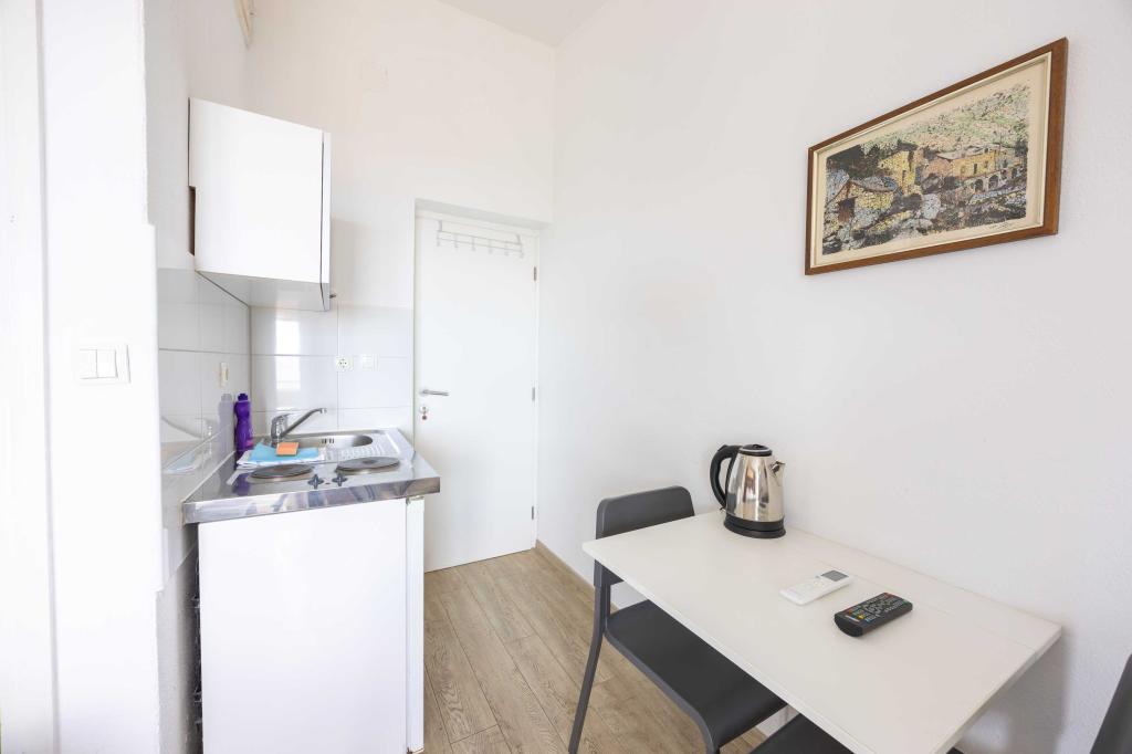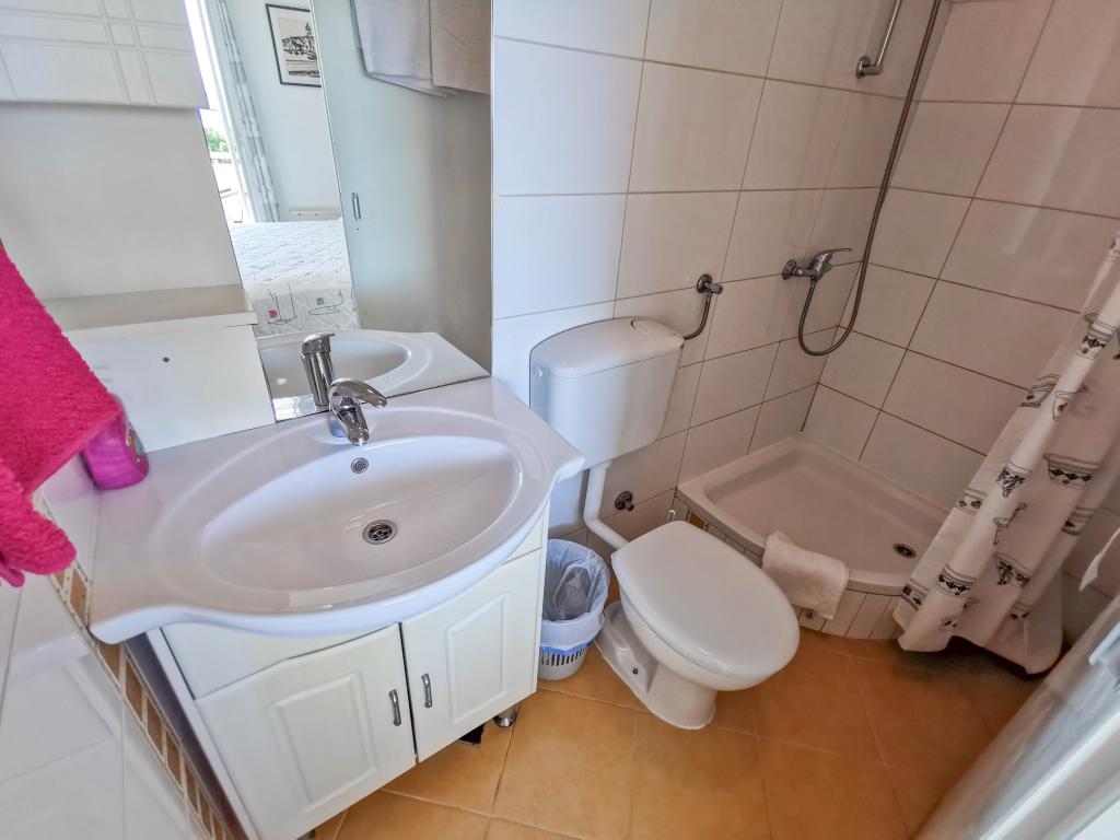 Blisko plaży w Makarskiej - 70 metrów od głównej plaży (około 1 minuty spacerem) Bezpłatny parking Bezpłatne Wi-Fi Bezpłatne korzystanie z klimatyzacji Nasze apartamenty: V1 - apartament dla 5 osób, parter, jedno duże łóżko i jedno łóżko pojedyncze w pokoju oraz jedna rozkładana sofa w salonie V2 - studio dla 3 osób, trzecie piętro, jedno duże łóżko i jedno łóżko pojedyncze, balkon z widokiem na morze V3 - studio dla 3 osób, trzecie piętro, jedno duże łóżko i jedno łóżko pojedyncze, balkon z widokiem na morze V4 - apartament dla 4 osób, trzecie piętro, jedno duże łóżko w pokoju oraz jedna rozkładana sofa w salonie, balkon z widokiem na morze V5 - apartament dla 5 osób, trzecie piętro, jedno duże łóżko i jedna mała rozkładana sofa w pokoju oraz jedna duża rozkładana sofa w salonie, balkon z widokiem na morze, kuchnia, łazienka/WC Wszystkie apartamenty mają własną kuchnię i łazienkę/WC. W sprawie cen i innych pytań prosimy o kontakt.