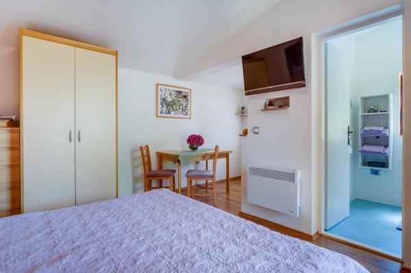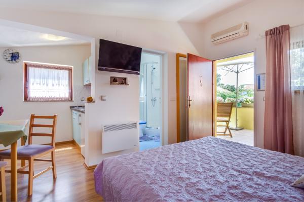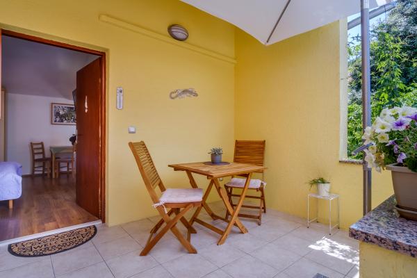W pełni wyposażony apartament Arty, sklasyfikowany w kategorii 4 gwiazdki, przeznaczony jest wyłącznie do zakwaterowania 2 osób. Jest to osobny obiekt położony obok domu, w którym mieszkają gospodarze. Znajduje się w spokojnej okolicy, w pobliżu kilku plaż i jest idealnym miejscem na wakacje. Do najbliższych plaż jest zaledwie kilka minut, a nieco dalej znajduje się kilka piękniejszych plaż. Istnieje możliwość przyjazdu ze zwierzęciem do apartamentu za dodatkową opłatą 10 euro. W cenę wliczony jest drink powitalny. Oprócz wyposażonej kuchni, jadalni, sypialni i łazienki, apartament posiada również własny parking, miejsce na rowery, grill tylko dla gości, bezpłatny internet WI-FI, klimatyzację, ogrzewanie, TV, antenę satelitarną, ... W kuchni każdy Gość otrzymuje: nową gąbkę i płyn do mycia naczyń, ręczniki kuchenne, . .W kuchni znajduje się również: toster, ekspres do kawy, czajnik, mikser stojący,... Życzymy Państwu serdecznego powitania i przyjemnego wypoczynku w naszym apartamencie!