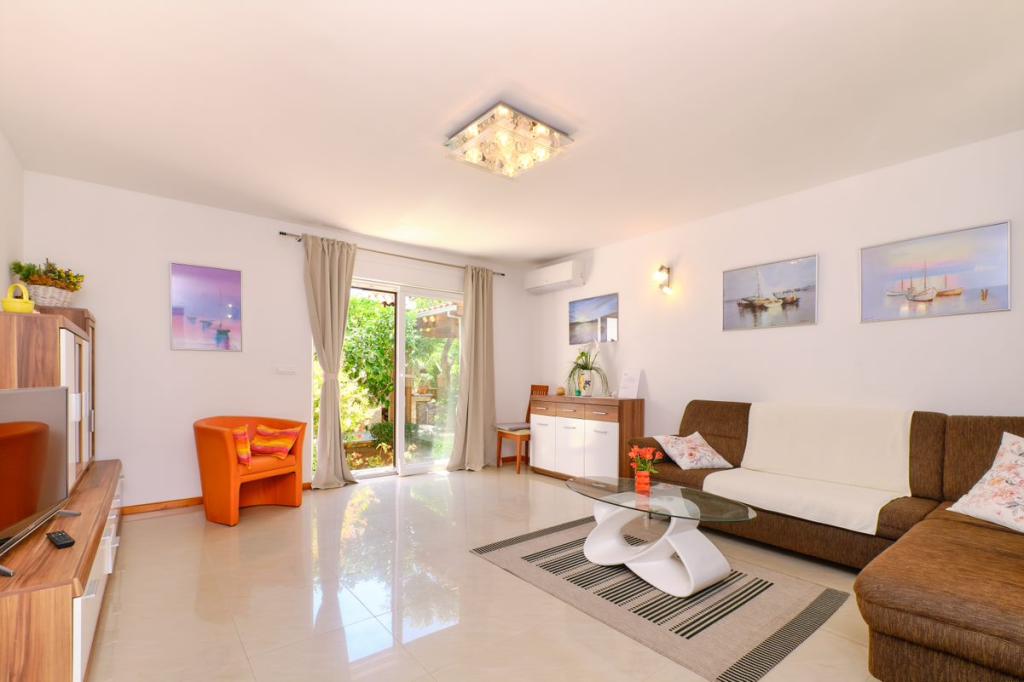 Mieszkanie jest przestronne, ładnie urządzone z kominkiem w ogródku. Posiada klimatyzację i internet WIFI. W pobliżu znajduje się restauracja, sklep, plac zabaw dla dzieci. Plaża nie jest daleko od apartamentu, a centrum miasta oddalone jest o 10 minut. W cenie parking przed domem,