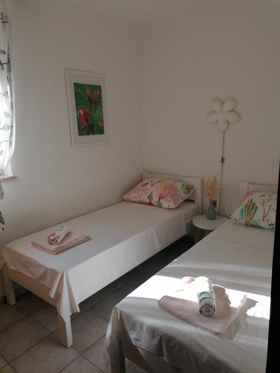 Apartamenty Ola znajdują się we wschodniej części wyspy, w trzecim rzędzie od morza, na drugim piętrze domu rodzinnego. Zaledwie kilka minut spacerem dzieli je od małej, kamienistej plaży, idealnej dla dzieci. Apartamenty wyposażone są w klimatyzację i bezpłatne Wi-Fi, a przed domem znajdują się dwa miejsca parkingowe. W pobliżu apartamentów znajduje się supermarket, plac zabaw dla dzieci i restauracje. Centrum miasta oddalone jest o 10 minut spacerem. Małe zwierzęta domowe są mile widziane za opłatą, po wcześniejszym uzgodnieniu. Dokładamy wszelkich starań, aby wszyscy nasi goście mieli przyjemny pobyt i mogli cieszyć się naszą gościnnością.
