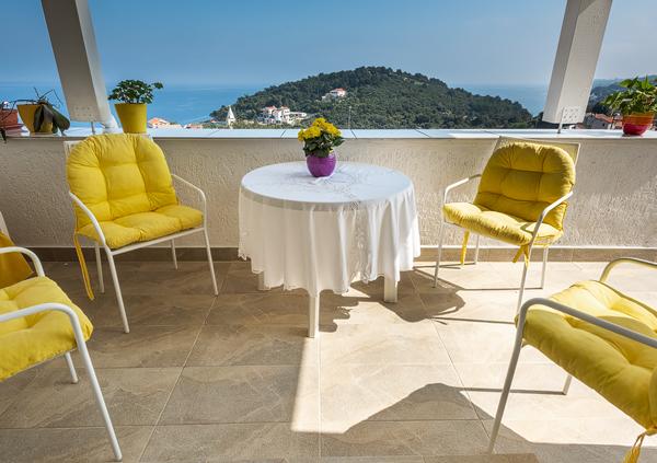 Przytulne i niezwykle czyste mieszkanie z solidnym tarasem i wspaniałymi widokami na morze i góry. Niezwykle zaangażowany i miły właściciel, zawsze gotowy do dialogu i ewentualnej pomocy. Dobra lokalizacja. Jedyny drobny mankament - bliskość głównej drogi od której dochodzi hałas uliczny.