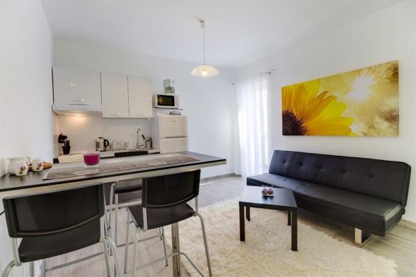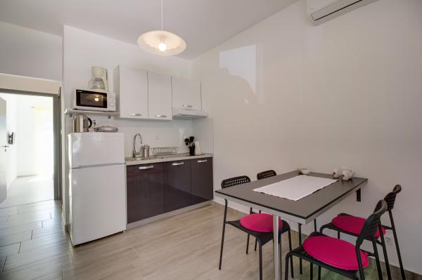 Po przyjeździe mieszkanie nie zostało dostatecznie posprzątane, powiedzmy 2/5 (warstwa kurzu pod łóżkami w obu pokojach, resztki jedzenia na naczyniach, kilka resztek komarów na płytkach w łazience, taras nie oczyszczony ). Lokalizacja apartamentu jest doskonała (blisko sklepy, deptak). Ponieważ późno w nocy pod mieszkaniem znajduje się restauracja, zapach oleju kuchennego jest dość intensywny. Nie polecam pobytu rodzinom z jednym/dwójką dzieci, bardziej dla par bez dzieci. W mieszkaniu jest dość ciepło pomimo klimatyzacji, więc nie polecam pobytu osobom starszym.