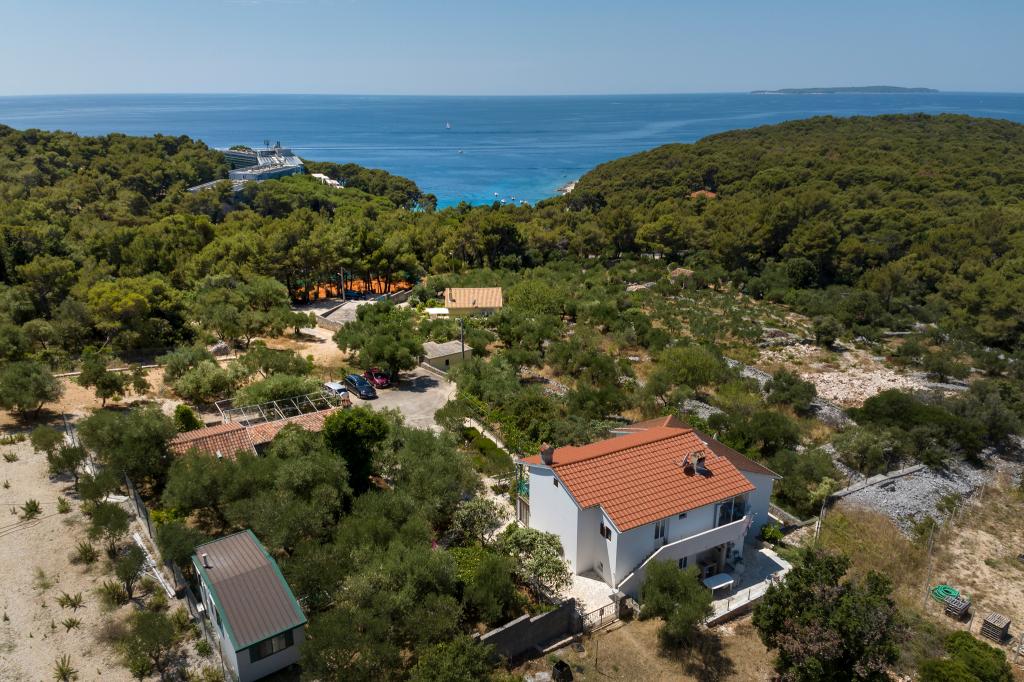 Dom położony jest w miejscowości Sunčana uvala na wyspie Mali Lošinj, w idealnej, spokojnej okolicy, otoczonej zielenią i zapachem wyspiarskich roślin aromatycznych. Najpiękniejsze plaże Sunčana uvala i Čikat oddalone są zaledwie o 5 minut spacerem, a centrum miasta ze sklepami, restauracjami, kawiarniami i innymi udogodnieniami – o zaledwie 10 minut spacerem. Oferujemy różnorodne opcje zakwaterowania, w tym apartamenty z widokiem na morze, idealne dla rodzin i par, a także komfortowy pokój dla gości poszukujących prostszego rozwiązania. Oprócz dogodnej lokalizacji, oferujemy bezpłatny parking na dziedzińcu domu, bezpłatny internet oraz możliwość grillowania na świeżym powietrzu. Zarezerwuj pobyt u nas i ciesz się relaksującą atmosferą, piękną przyrodą i niezapomnianymi wakacjami nad morzem!