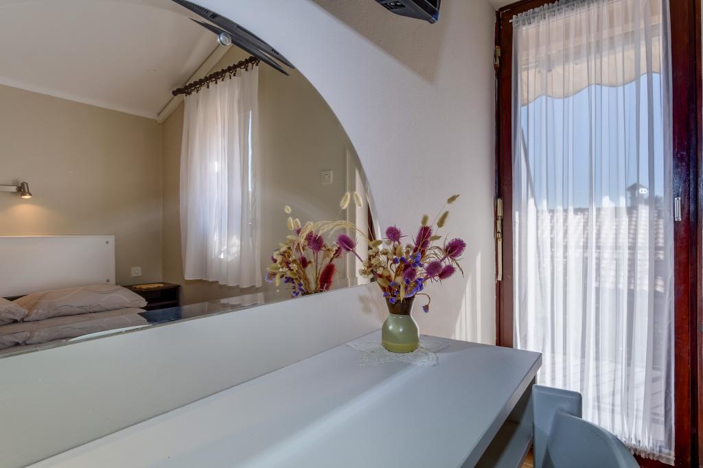 Apartamenty ANNA 1 i ANNA 2 są częścią domu rodziny Kerovec. Dom położony jest przy cichej ulicy w miejscowości Artatore, w otoczeniu zieleni. Znajduje się 120 m od plaży. Wejścia do apartamentów są oddzielne. Apartamenty są nowocześnie urządzone. Kuchnia wyposażona jest w przybory do przygotowywania i spożywania posiłków. W kuchni znajduje się stół jadalny i wystarczająca liczba krzeseł. Łazienka/toaleta wyposażona jest w kabinę prysznicową. Ręczniki zmieniane są co 3 dni. Papier toaletowy zapewniany jest wyłącznie przy pierwszym przyjeździe do apartamentu. W sypialni znajduje się jedno łóżko podwójne i jedno pojedyncze o normalnych wymiarach. Klimatyzator w pokoju i wentylator sufitowy wykorzystywane według własnego uznania. W pokoju znajduje się odbiornik telewizyjny. Pościel zmieniana jest co 7 dni. b Możliwość korzystania z grilla i mebli ogrodowych po uzgodnieniu z gospodarzem. Każde mieszkanie posiada miejsce parkingowe wewnątrz ogrodzenia domu, gdzie samochody są przez cały dzień chronione przed słońcem.