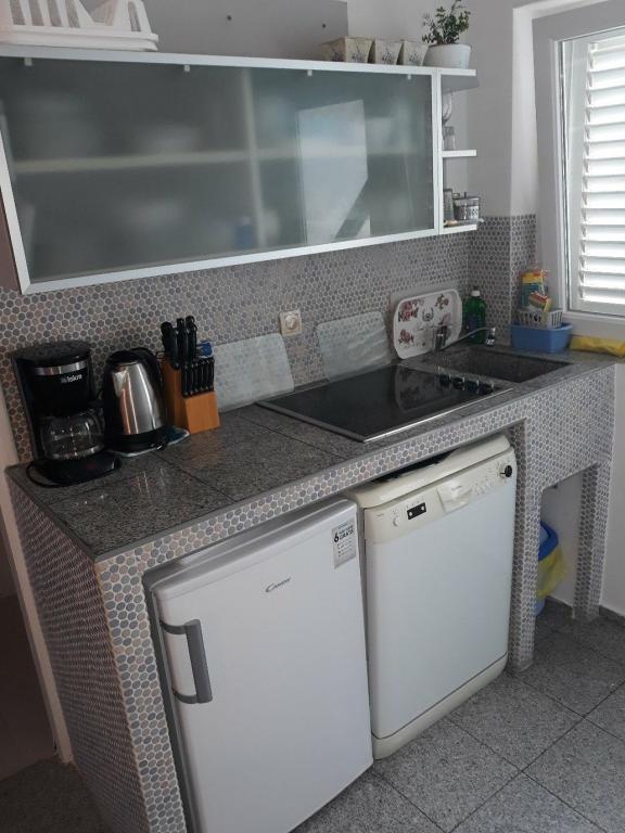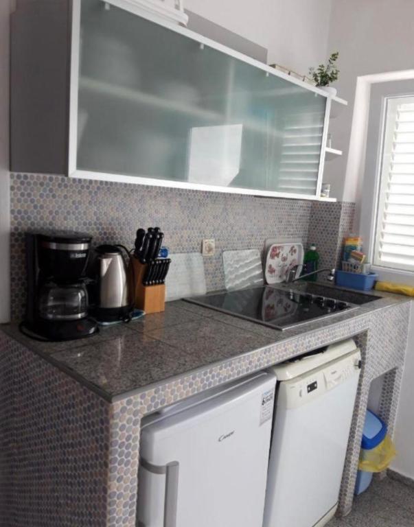 70m do plaży. Ładny apartament w świetnej lokalizacji blisko morza. Kuchnia ze zmywarką, jeden pokój z podwójnym łóżkiem, drugi pokój z dwoma pojedynczymi łóżkami, 2 klimatyzatory, telewizja satelitarna, Wi-Fi, parking, rejestracja gości. Wszystko wliczone w cenę. Odległość do plaży 70 m, mały sklep 50 m, plac zabaw dla dzieci 60 m, restauracja 70 m, ścieżki rowerowe, promenada nad morzem. W pobliżu znajduje się centrum odnowy biologicznej, basen, wypożyczalnia łodzi, rowerów i motocykli.