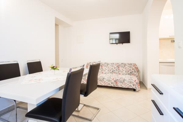 Mieszkanie przeznaczone jest dla 4 osób. Znajdujemy się w spokojnej części Malinskiej, w pełni wyposażone apartamenty, 680m do plaży, 250m do sklepu, 250m do restauracji. Parking jest na tyle duży, że można również zaparkować łódź. Ponadto grill jest zawsze dostępny.