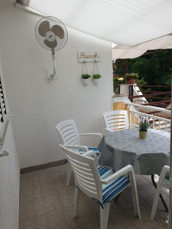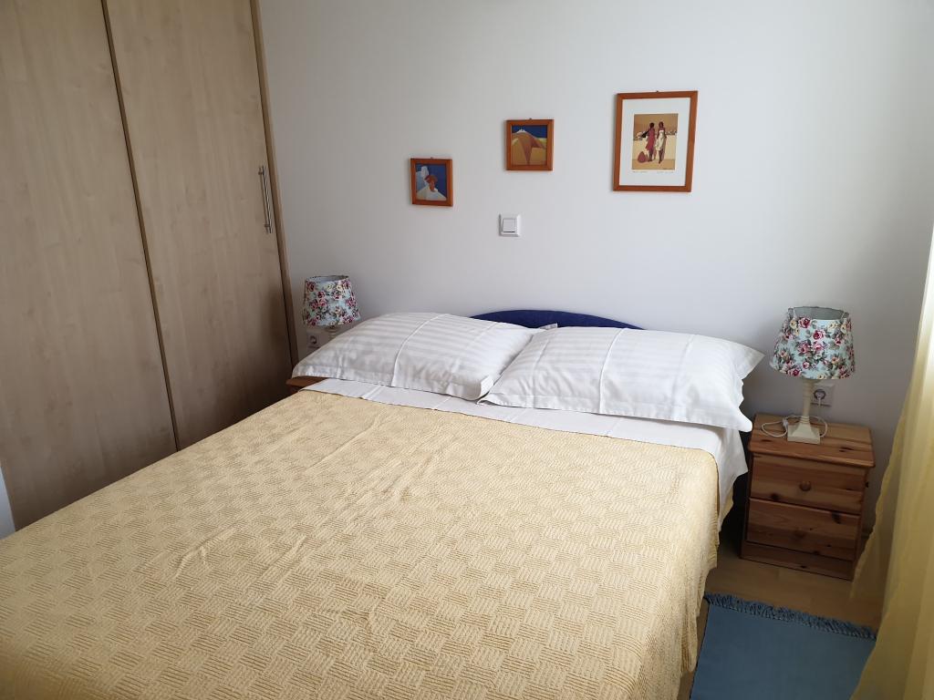 Mieszkanie dwuosobowe. AP 2+1 z dodatkowym łóżkiem znajduje się na 1 piętrze domu rodzinnego. Dodatkowe łóżko jest z natury trzyosobowe, które można rozłożyć i przekształcić w łóżko podwójne. Mieszkanie posiada osobne wejście, własny mały zadaszony taras, miejsce parkingowe, klimatyzację, TV i inne wyposażenie zapewniające komfortowy pobyt dla trzyosobowej rodziny. Powierzchnia mieszkania to 30 m. Dom znajduje się na końcu ślepej uliczki - nie ma ruchu. Na bogatym w zieleń podwórku znajduje się grill, z którego mogą korzystać goście. Odległość od pierwszej zorganizowanej plaży z prysznicami to około 400 m, co oznacza około 8 minutowy spacer. Jeśli lubisz spacerować, odkryjesz różne zatoczki i plaże. Cała Malinska jest właściwie zagospodarowaną plażą, którą należy zbadać.