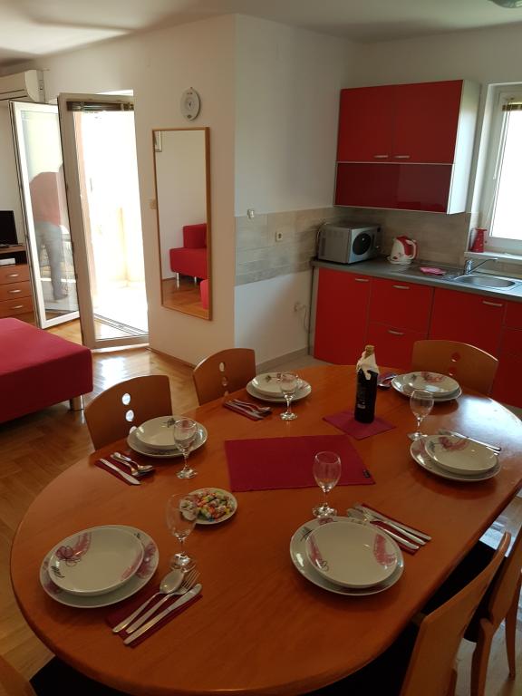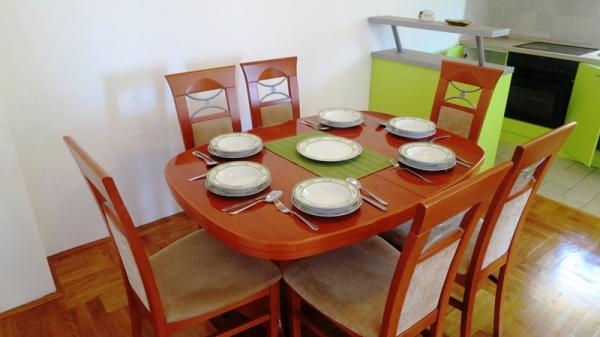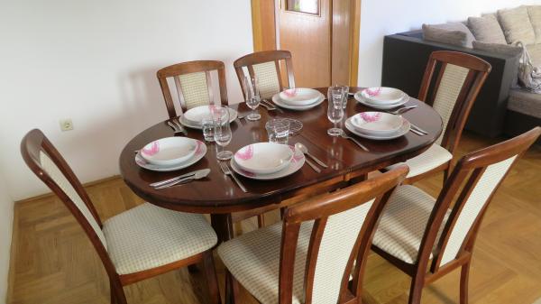 - Apartamenty 62 m2 z balkonami, w pełni umeblowane z 2 sypialniami, salonem, kuchnią, jadalnią, kabiną prysznicową i toaletą dla 4 osób; klimatyzacja, wifi, grill, parking, TV-sat, Apartamenty 550 metrów nad centrum- 10 minut spacerem, 650 metrów od plaży - 15 minut spacerem.