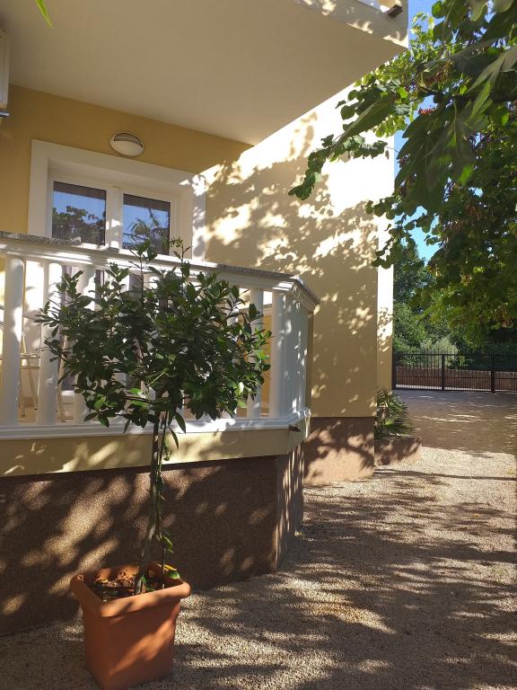 Dwa w pełni umeblowane apartamenty z oddzielnymi wejściami i strzeżonymi miejscami parkingowymi na własnym zamkniętym podwórku i naturalnym cieniu. Każdy apartament jest klimatyzowany i posiada taras. Oba wyposażone są w WiFi, programy satelitarne, kuchenkę mikrofalową, lodówkę z zamrażarką, toster, ekspres do kawy z filtrem, podgrzewacz wody, suszarkę do włosów, pościel i ręczniki. W oknach wszystkich sypialni znajdują się moskitiery. Do najbliższej plaży można dojść w 10 minut, a do centrum Malinskiej można dojść w 40 minut. Apartamenty są częścią rodzinnego domu w spokojnej części Malinskiej i są otoczone zielenią.