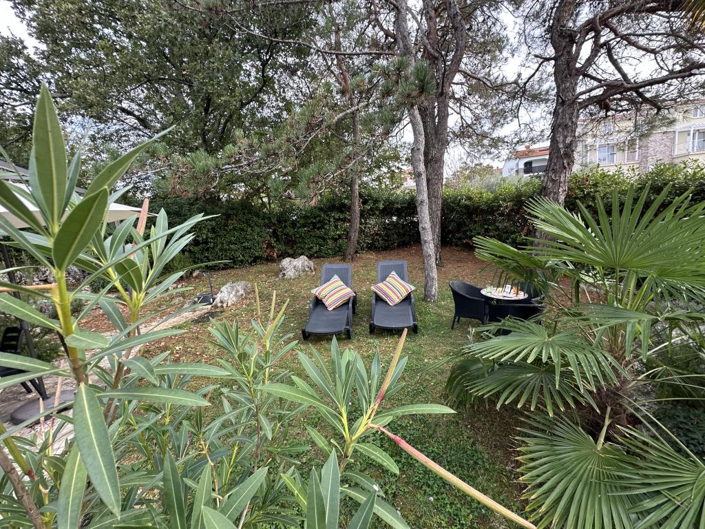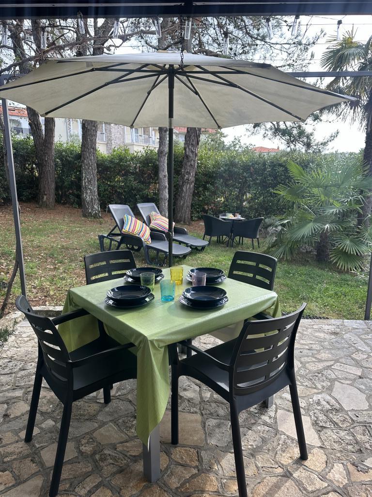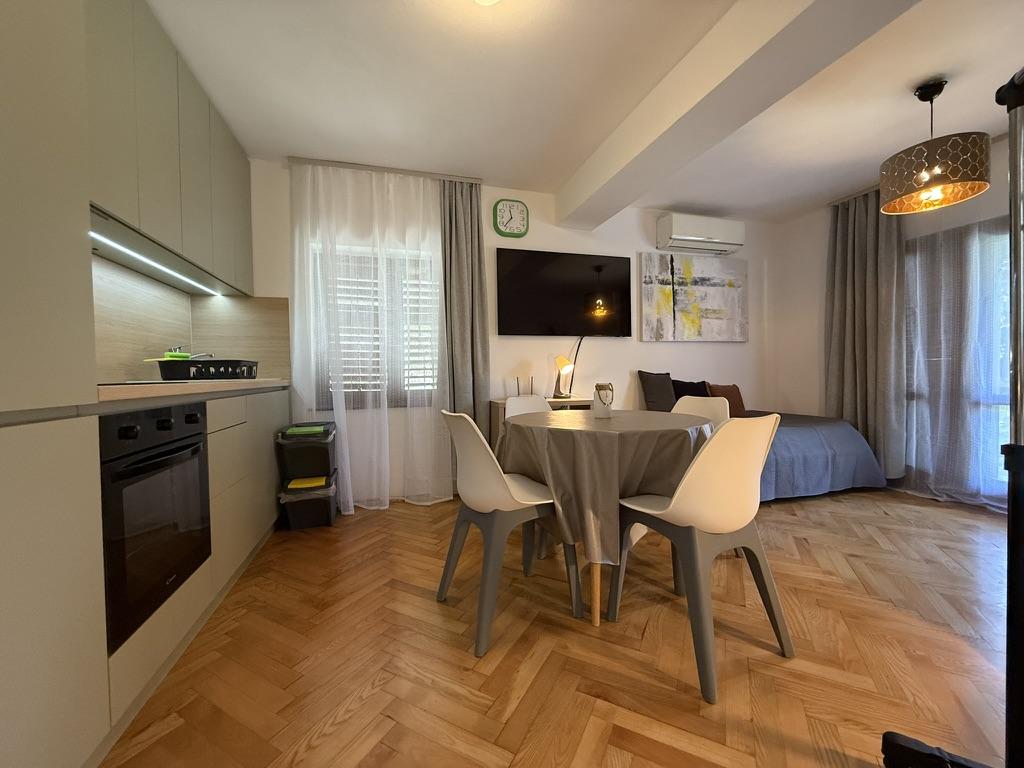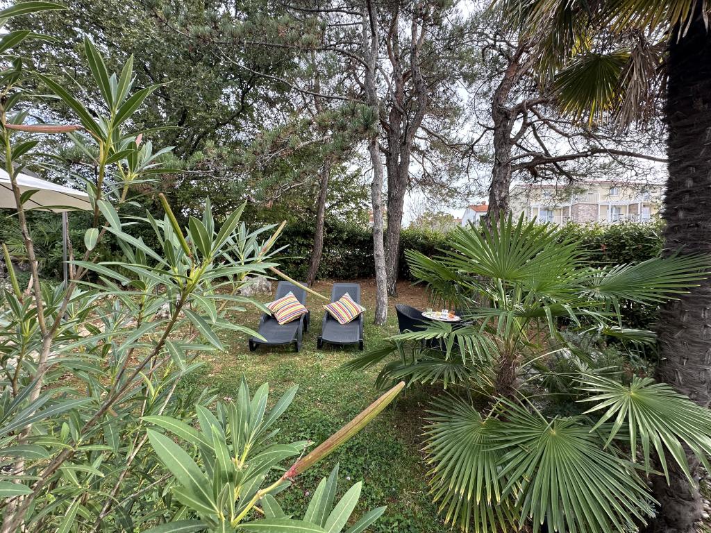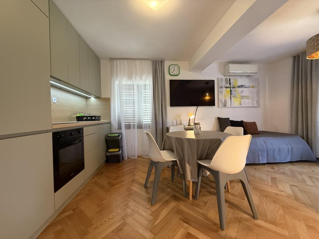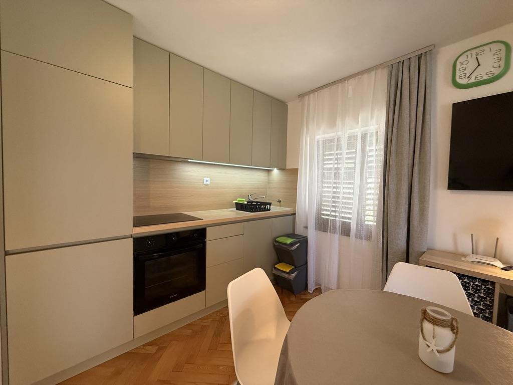 Apartamenty 50m2 z tarasami i ogrodem 200m2, położone są w spokojnej okolicy, 100m od morza i plaży w zatoce Rova. W cieniu znajduje się oddzielny, prywatny i bezpieczny parking. W bezpośrednim sąsiedztwie znajduje się park dla dzieci, sporty wodne, siłownia plenerowa oraz liczne restauracje i bary na plaży, deptaki wzdłuż morza i ścieżki rowerowe. W przestronnym ogrodzie pełnym śródziemnomorskiej zieleni przyjemnie jest spędzić cały dzień w cieniu.