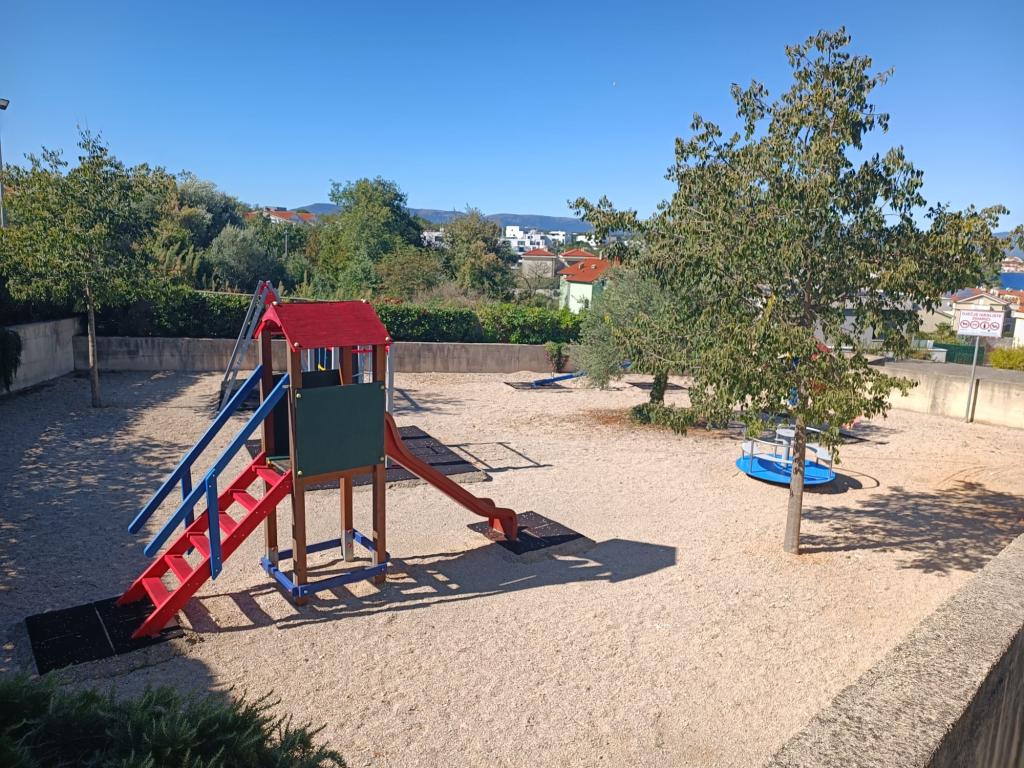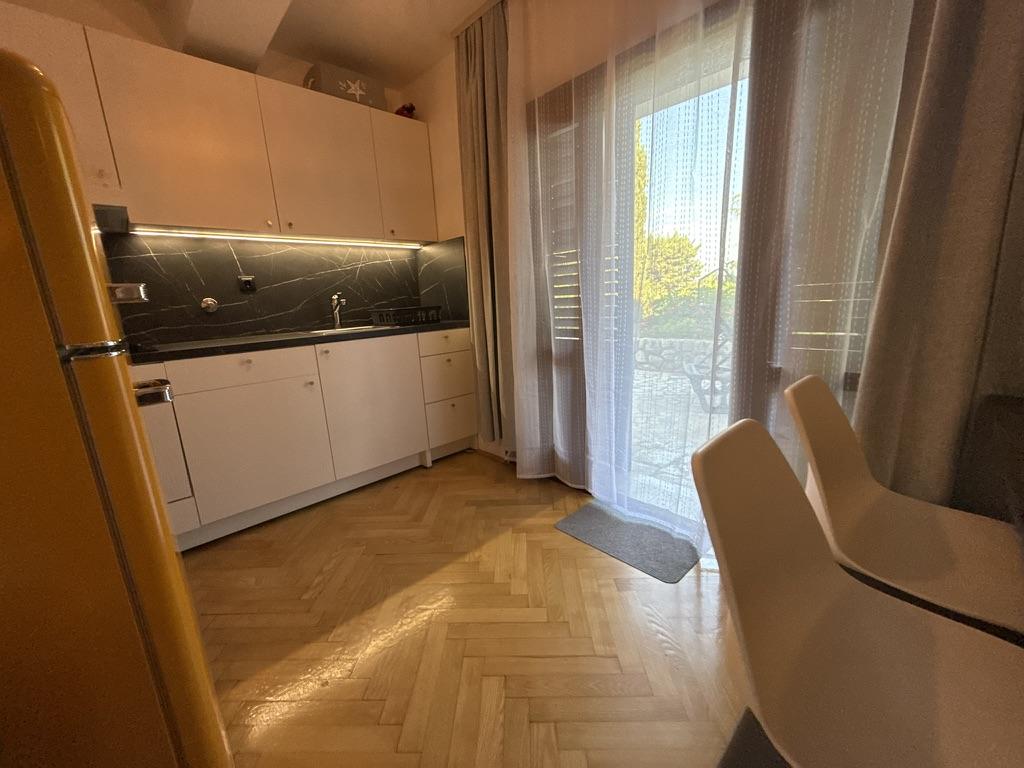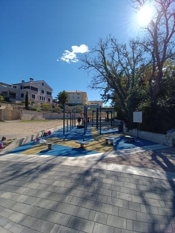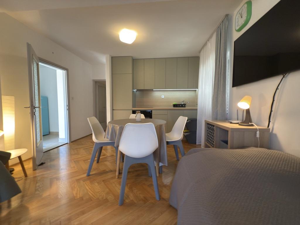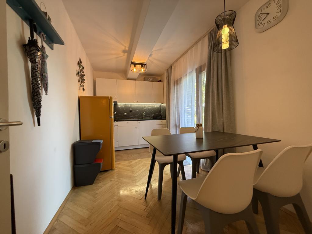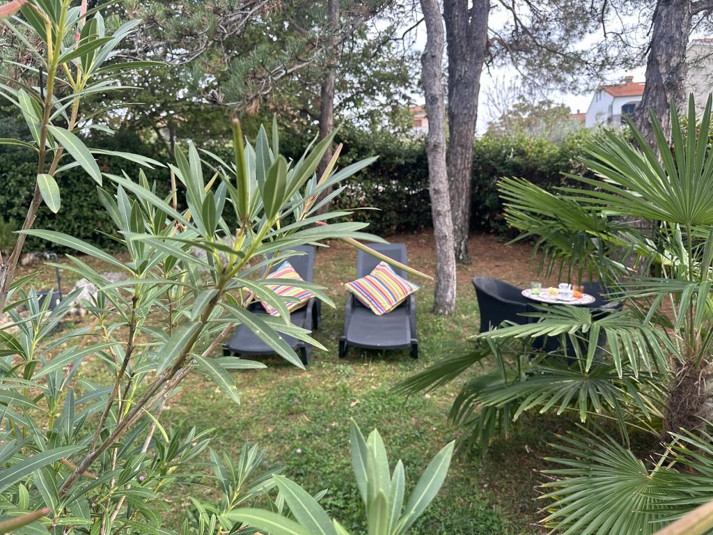 Apartamenty 50m2 z tarasami i ogrodem 200m2, położone są w spokojnej okolicy, 100m od morza i plaży w zatoce Rova. W cieniu znajduje się oddzielny, prywatny i bezpieczny parking. W bezpośrednim sąsiedztwie znajduje się park dla dzieci, sporty wodne, siłownia plenerowa oraz liczne restauracje i bary na plaży, deptaki wzdłuż morza i ścieżki rowerowe. W przestronnym ogrodzie pełnym śródziemnomorskiej zieleni przyjemnie jest spędzić cały dzień w cieniu.