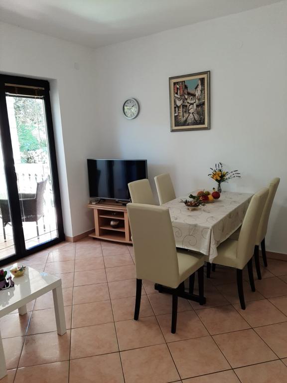 Apartamenty są w pełni wyposażone, zlokalizowane w spokojnej części Malinskiej. Obiekt położony jest 50 m od centrum i 10 minut spacerkiem do plaży. Każdy apartament posiada własny taras, parking i osobne wejście.