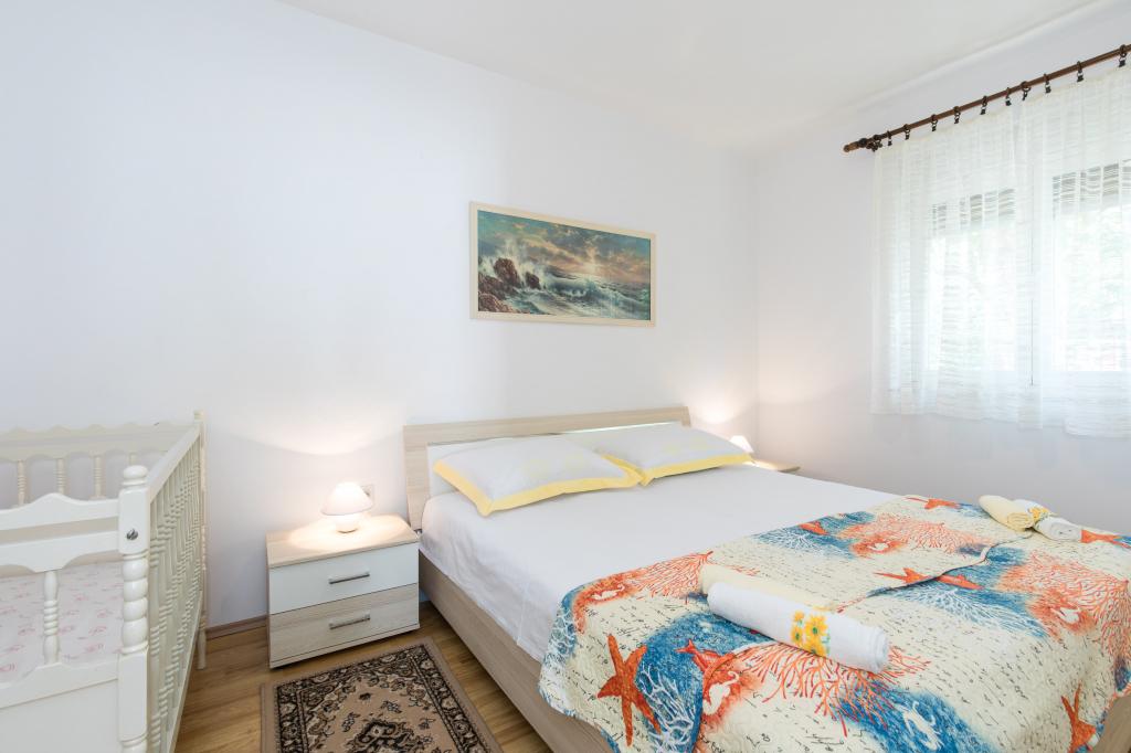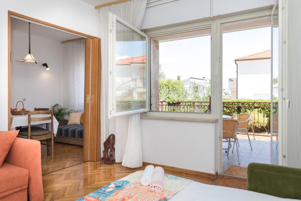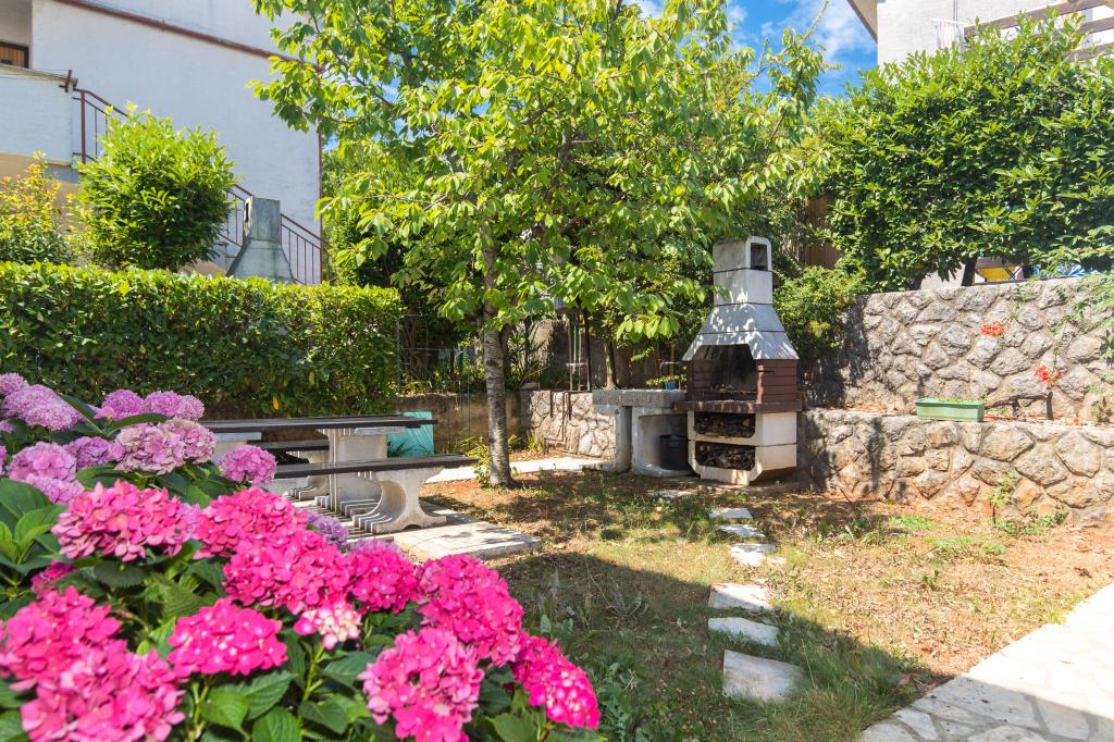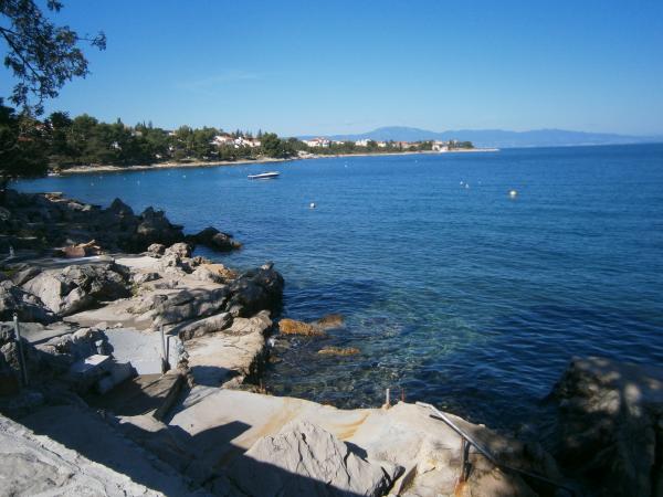 Apartamenty znajdują się w małej, spokojnej miejscowości Vantačići, 2 km od Malinskiej, do której prowadzi piękna promenada wzdłuż wybrzeża morskiego. Również ta sama trasa prowadzi na drugą stronę do małej wioski rybackiej Porat, 1 km od Vantačića. Każde mieszkanie posiada własny taras (10m2 i 15m2) i znajdują się na parterze budynku. W ogrodzie znajduje się grill, meble ogrodowe, prysznic na zewnątrz i parking dla samochodów. Parking jest osłonięty przed słońcem baldachimem drzew kiwi i winorośli. Morze znajduje się 100 metrów od apartamentu i prowadzi do niego piaszczysta ścieżka. Restauracja, pizzeria i bary na plaży znajdują się na wybrzeżu w Vantačići. Porat posiada bogatą ofertę gastronomiczną (restauracja rybna, pizzeria, grill).
