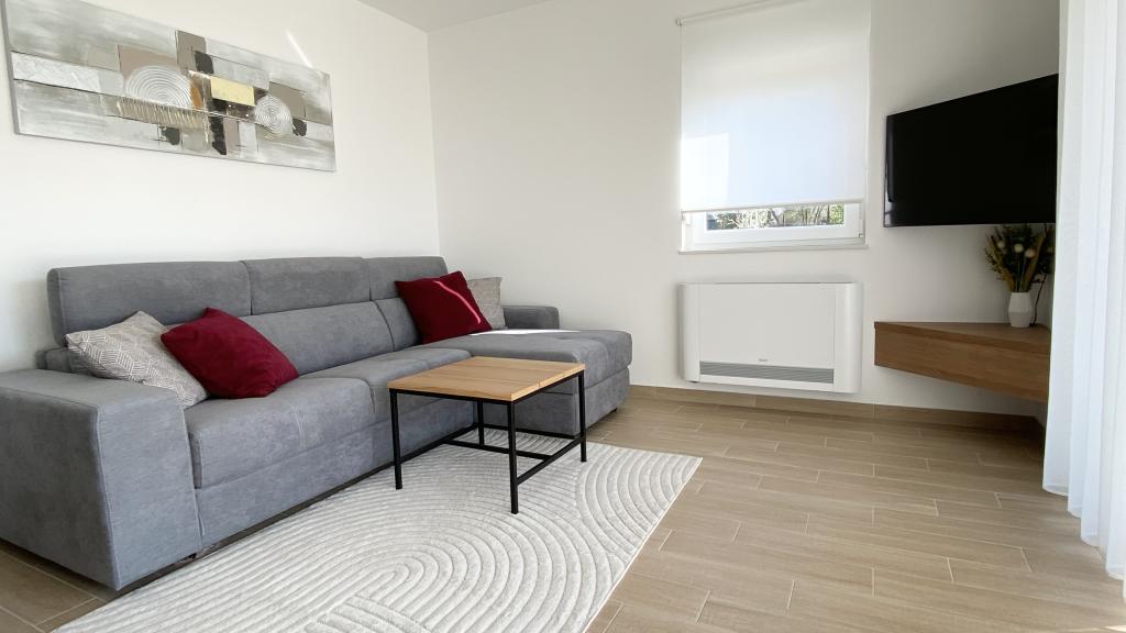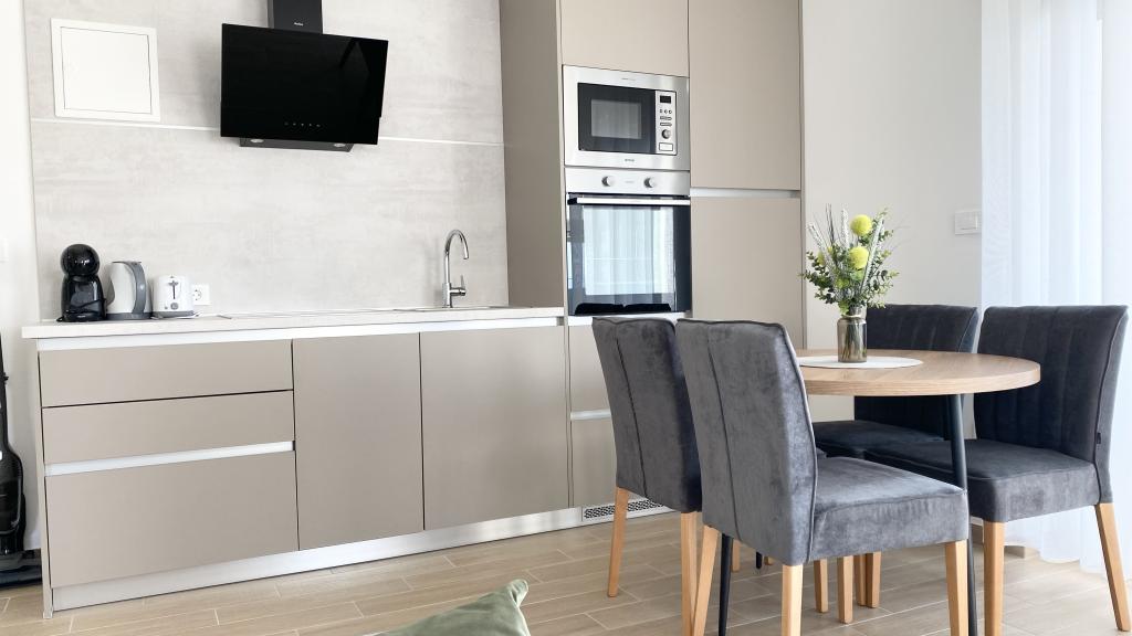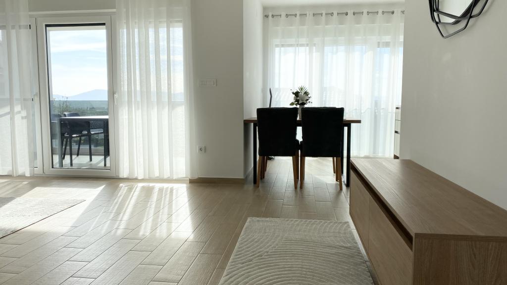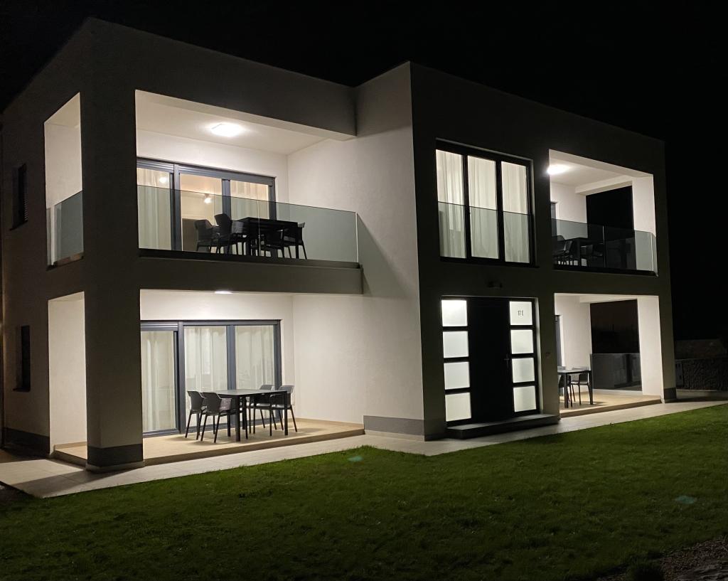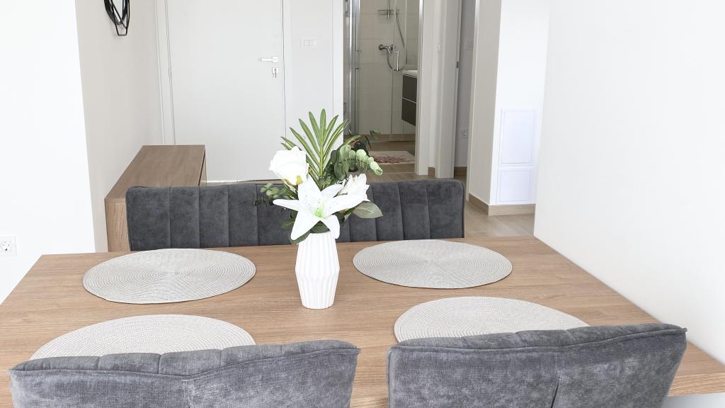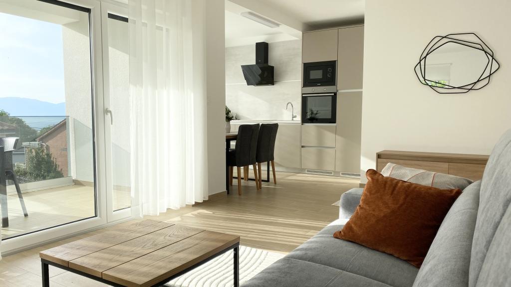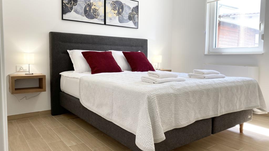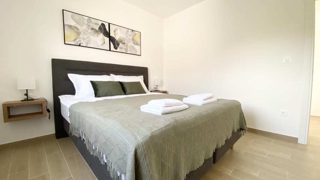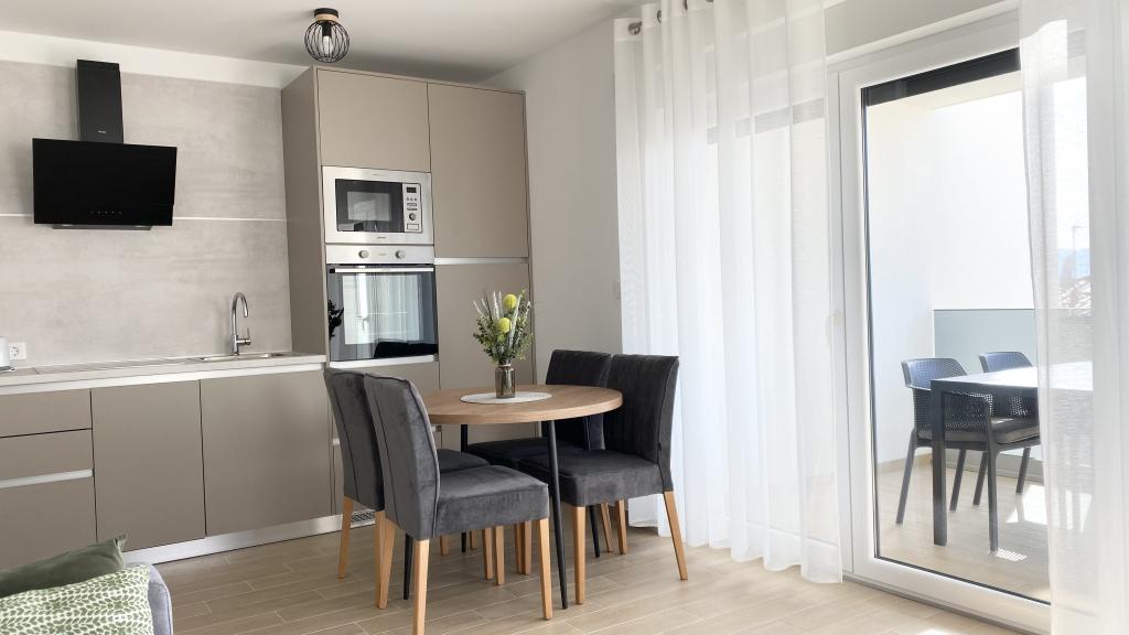 Villa Malina to nowy apartamentowiec położony w spokojnej części miejscowości. Oferuje trzy nowocześnie urządzone apartamenty o powierzchni 50, 55 i 60 m² z osobnymi wejściami i bezpiecznymi miejscami parkingowymi na podwórku. Każdy apartament składa się z salonu, sypialni, łazienki, kuchni i zadaszonego tarasu. W salonie znajduje się rozkładana sofa, która może służyć jako dodatkowe miejsce do spania dla dwóch osób. Kuchnia wyposażona jest w naczynia, ściereczki kuchenne, piekarnik, kuchenkę mikrofalową, lodówkę z zamrażarką, czajnik, kuchenkę elektryczną, toster i zmywarkę. Dodatkowe wyposażenie obejmuje dostęp do internetu, klimatyzację w każdym pokoju, odkurzacz, pralkę, suszarkę do włosów oraz moskitiery we wszystkich oknach. Na życzenie dostępne jest bezpłatne łóżeczko dziecięce. Goście mają dostęp do wspólnego tarasu z grillem i prysznicem na świeżym powietrzu. Przy pobytach trwających 10 dni lub dłużej obowiązuje 10% zniżki.