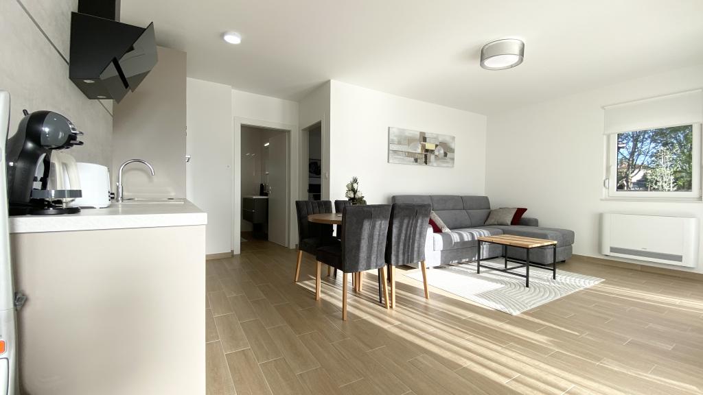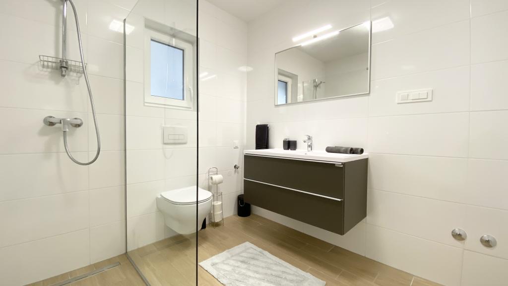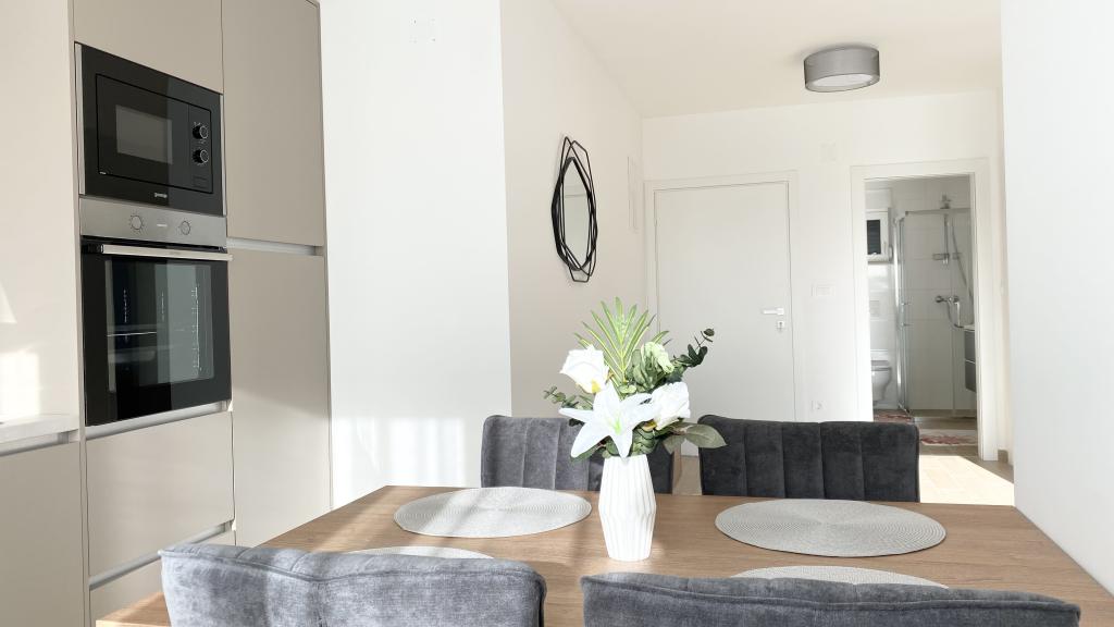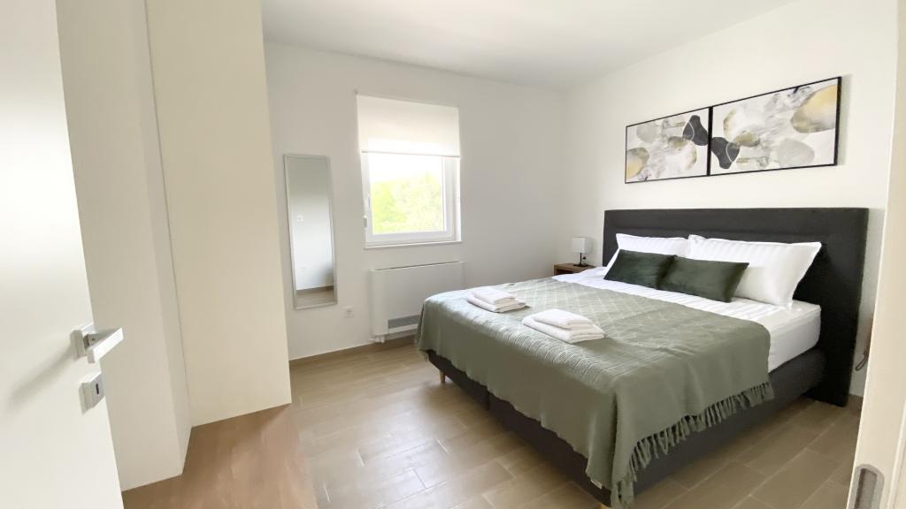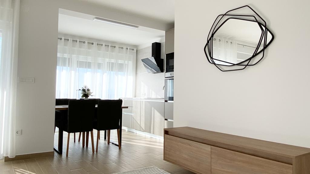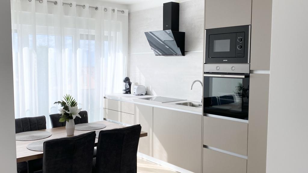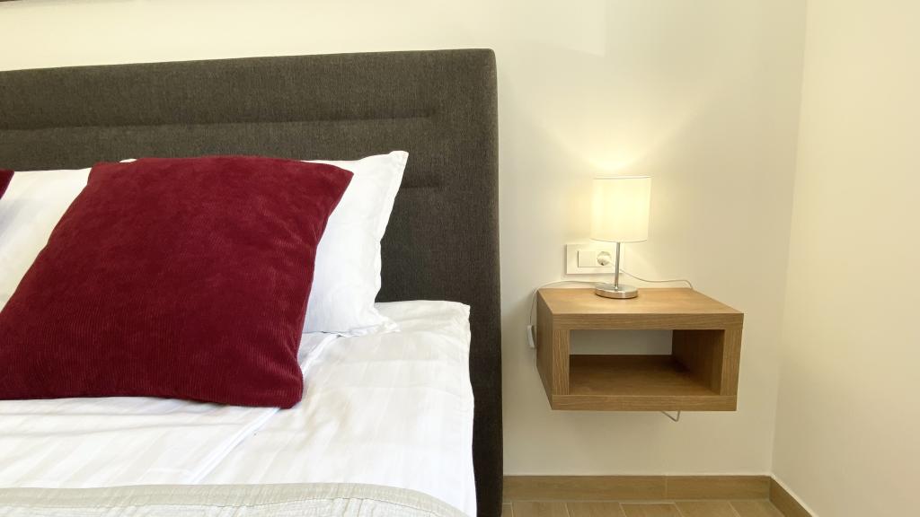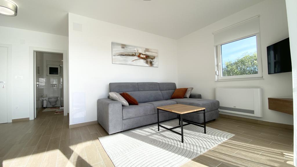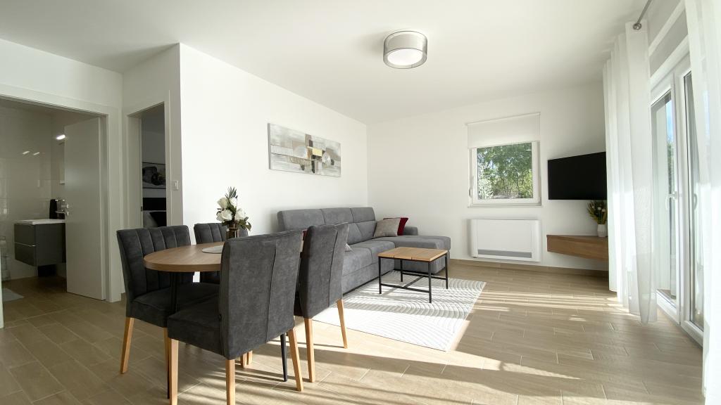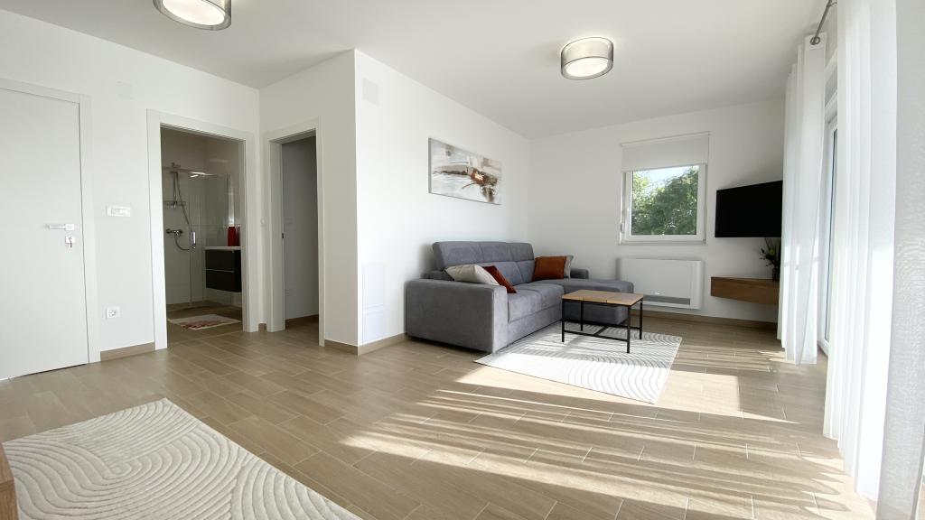 Villa Malina to nowy apartamentowiec położony w spokojnej części miejscowości. Oferuje trzy nowocześnie urządzone apartamenty o powierzchni 50, 55 i 60 m² z osobnymi wejściami i bezpiecznymi miejscami parkingowymi na podwórku. Każdy apartament składa się z salonu, sypialni, łazienki, kuchni i zadaszonego tarasu. W salonie znajduje się rozkładana sofa, która może służyć jako dodatkowe miejsce do spania dla dwóch osób. Kuchnia wyposażona jest w naczynia, ściereczki kuchenne, piekarnik, kuchenkę mikrofalową, lodówkę z zamrażarką, czajnik, kuchenkę elektryczną, toster i zmywarkę. Dodatkowe wyposażenie obejmuje dostęp do internetu, klimatyzację w każdym pokoju, odkurzacz, pralkę, suszarkę do włosów oraz moskitiery we wszystkich oknach. Na życzenie dostępne jest bezpłatne łóżeczko dziecięce. Goście mają dostęp do wspólnego tarasu z grillem i prysznicem na świeżym powietrzu. Przy pobytach trwających 10 dni lub dłużej obowiązuje 10% zniżki.