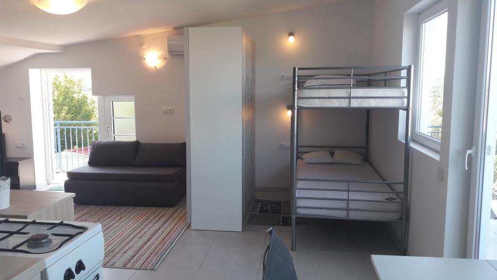 W spokojnej części Sveti Vid znajduje się prywatny dom w zabudowie bliźniaczej z funkcjonalnie wyposażonymi apartamentami dla 2-6 osób. Wszystkie posiadają własne tarasy, z których można wejść do apartamentu. Właściciele mieszkają na parterze domu. Na podwórku znajduje się duży stół z ławkami i grill. Parking znajduje się na podwórku. Do centrum Malinskiej jest 15 minut, a do plaży 20 minut spacerem. W okolicy znajduje się wiele pięknych plaż, nadmorskich promenad i ścieżek rowerowych. Dla miłośników dobrej zabawy w pobliżu znajduje się klub nocny Diamant (ok. 2 km). Cena obejmuje klimatyzację, opłatę klimatyczną, zameldowanie, sprzątanie końcowe, telewizję satelitarną, pościel, ręczniki, ściereczki kuchenne, detergenty, gąbki, papier toaletowy i mydło. Parking i Wi-Fi są bezpłatne. KOSZTY DODATKOWE: - Zwierzę domowe = 5 €/dzień - 1 pies - Pranie = 3 € - Ogrzewanie od 4 do 6 €/dzień - 1 noc droższa o 30% - Od 10.7 do 25.8 Możliwy jest minimalny pobyt 7 nocy, z wyjątkiem uzupełnienia luk między rezerwacjami - Od 1 do 9 lipca oraz od 25 do 31 sierpnia można zarezerwować minimalny pobyt 5 nocy