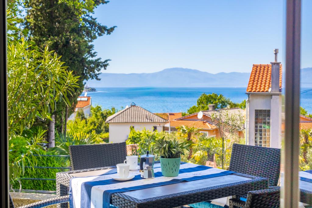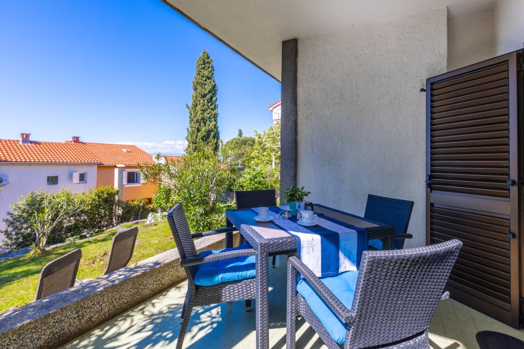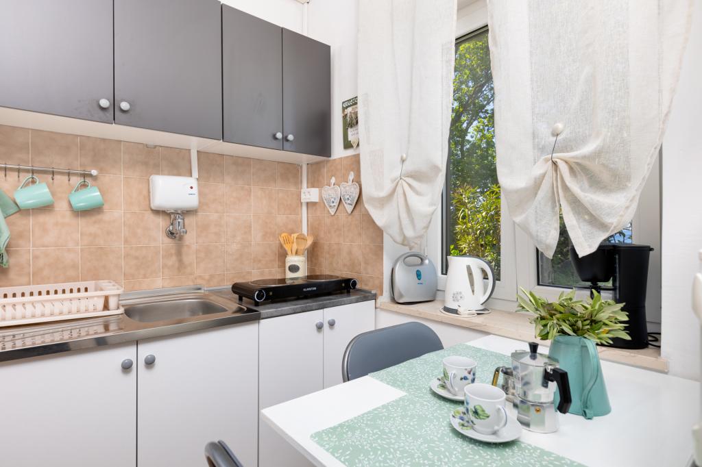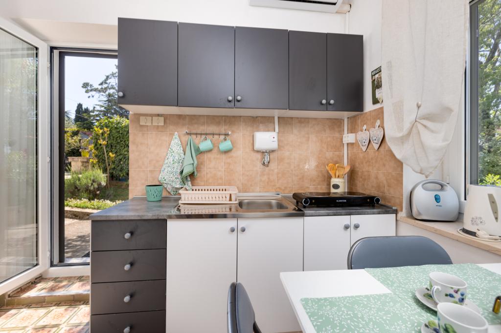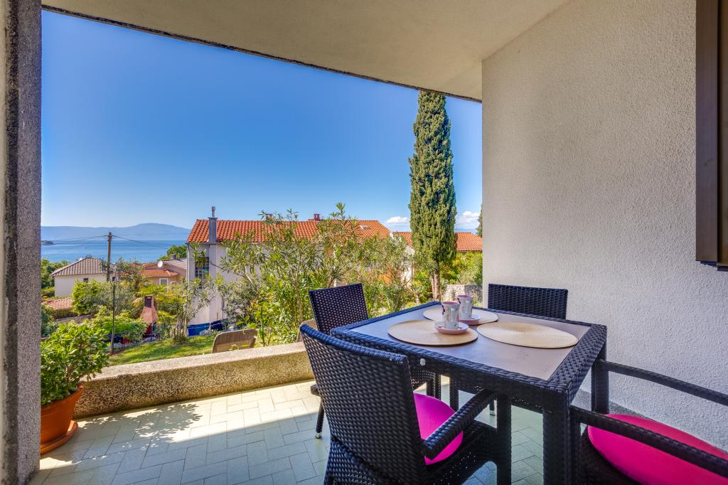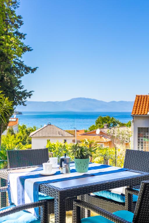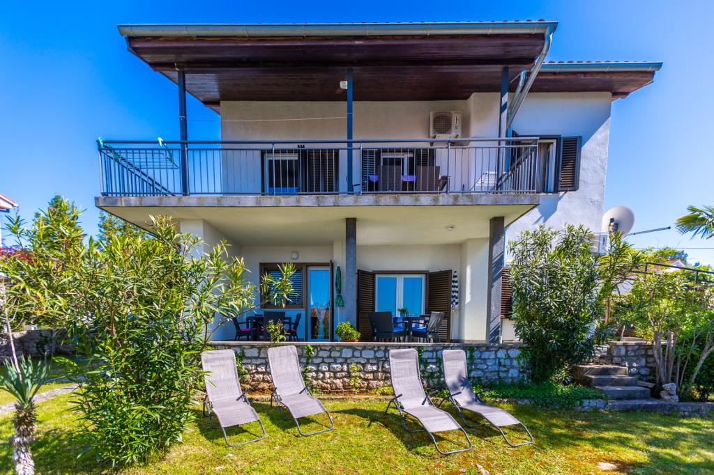 Dwa dobrze wyposażone i urządzone apartamenty na parterze domu w spokojnej części Malinskiej, z bezpiecznym, częściowo zadaszonym parkingiem, zadaszonymi tarasami z widokiem na morze, zagospodarowanym ogrodem z roślinnością śródziemnomorską, przydomowym grillem. Apartamenty są klimatyzowane, TV LCD SAT, Internet Wi-Fi. Wyposażone kuchnie - kuchenka mikrofalowa, przelewowy ekspres do kawy, toster, zmywarka.