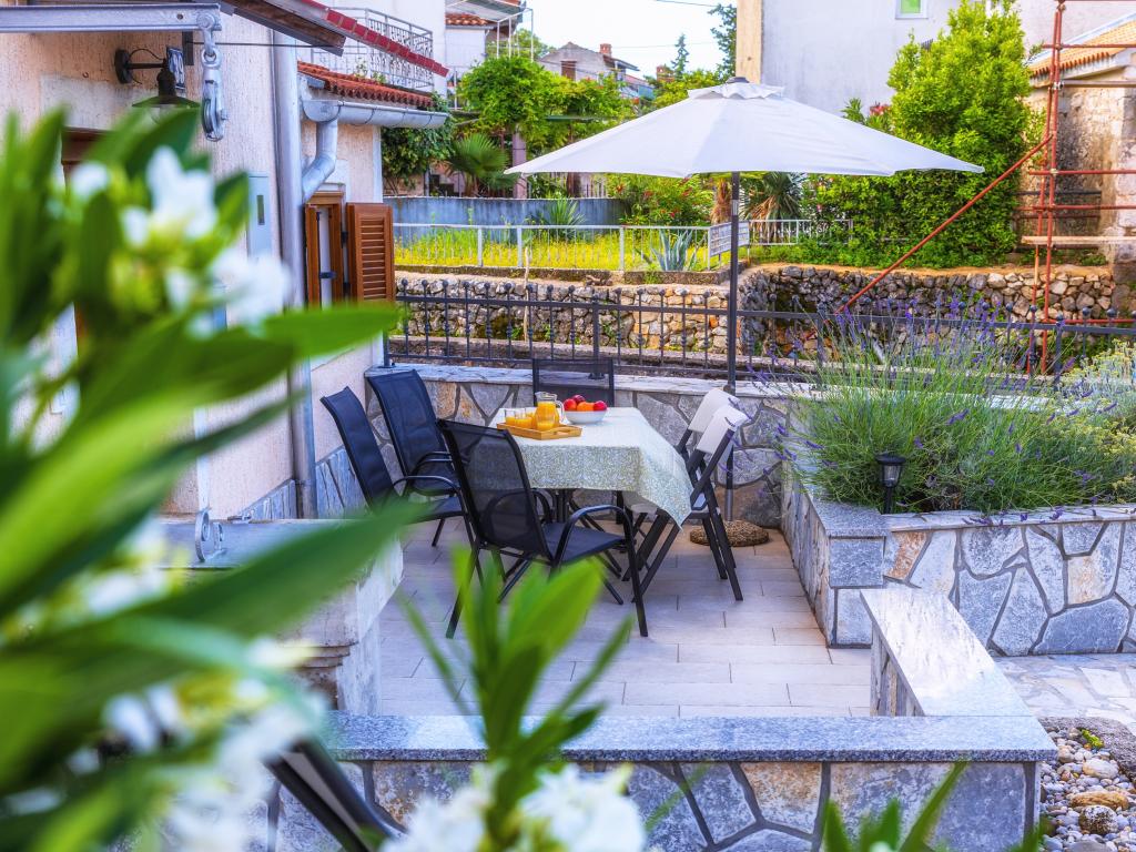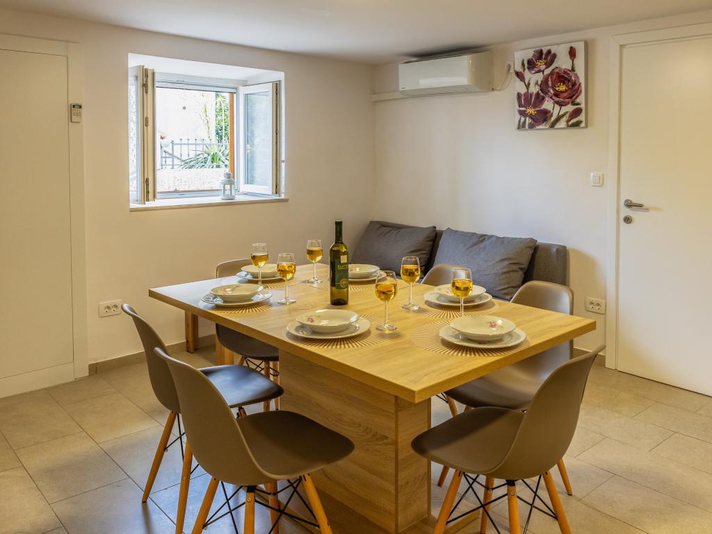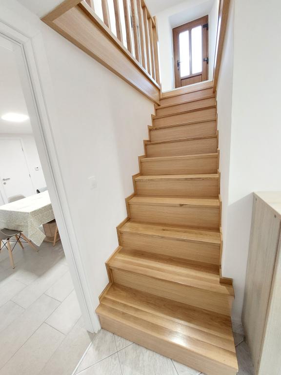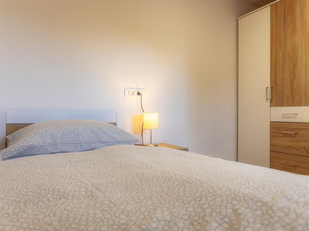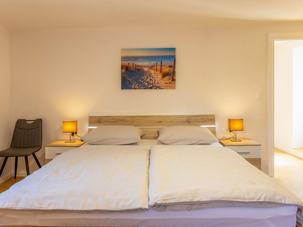 Nowo wyremontowany dom wakacyjny z widokiem na morze. Może pomieścić 6 osób w 4 sypialniach. Parter zdominowany jest przez duży otwarty salon, jadalnię oraz w pełni wyposażoną kuchnię. Na tym samym piętrze znajduje się sypialnia z łóżkiem małżeńskim i 2 łazienki. Schody prowadzą na piętro, gdzie znajdują się 3 sypialnie, jedna sypialnia z łóżkiem podwójnym i 2 sypialnie z łóżkiem pojedynczym. Na zewnątrz znajduje się grill z dodatkowym stołem i krzesłami. Na podwórzu znajduje się parking dla 2 pojazdów. W pobliżu znajduje się plac zabaw dla dzieci.