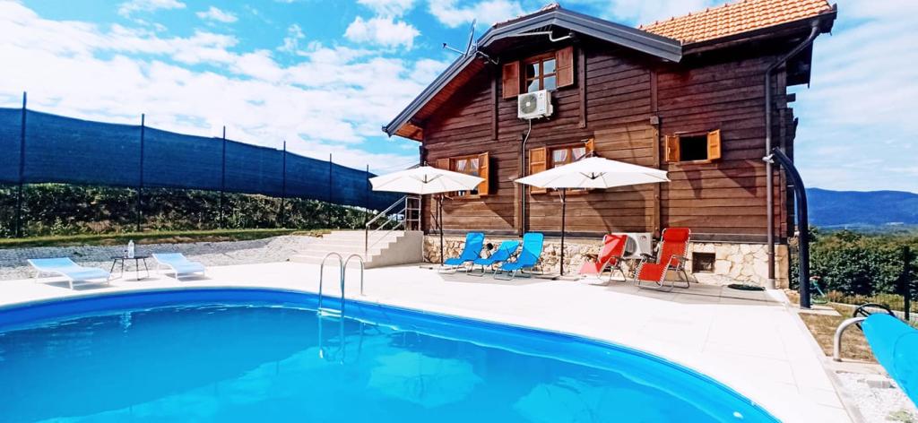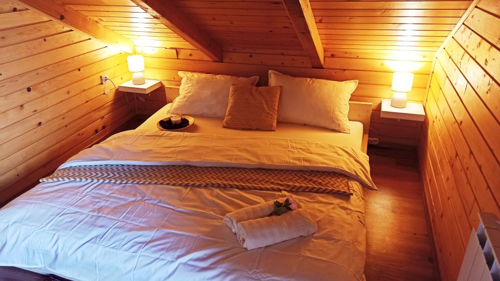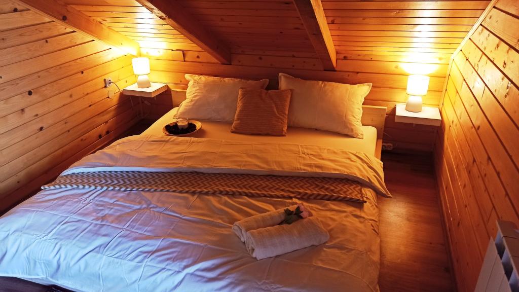 Holiday Home King's Lodge to drewniany dębowy dom położony w Hrvatsko Zagorje z widokiem na górę Ivanščica ... Do Państwa dyspozycji: - 3 oddzielne sypialnie - 2,5 łazienki - przestronny salon z kominkiem - sauna - grill z zadaszonym tarasem - pokój dla spotkania towarzyskie i zabawy (rzutki, bilard, PS, gry planszowe...) - kominek zewnętrzny - plac zabaw dla dzieci - kącik dla dzieci i kącik do czytania